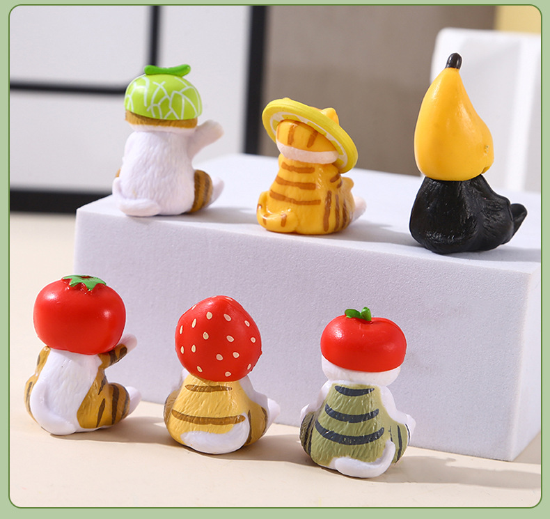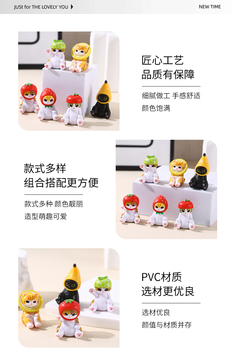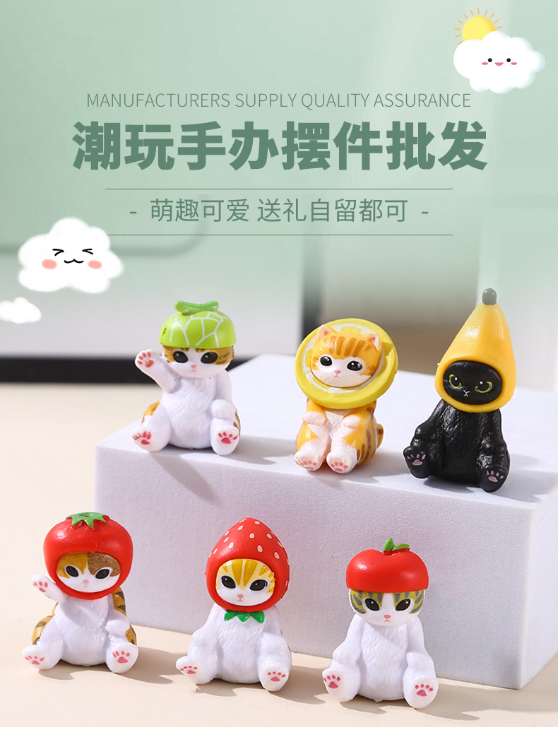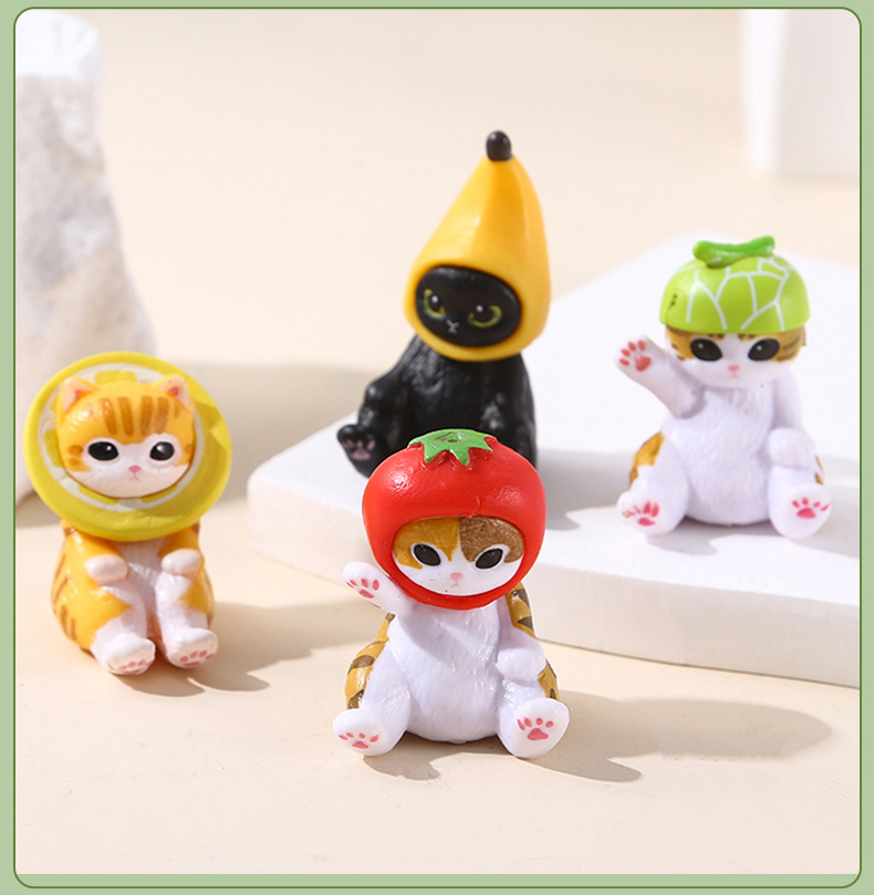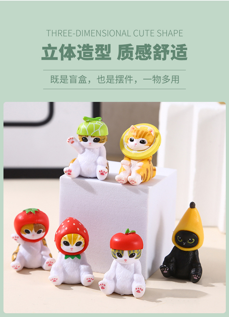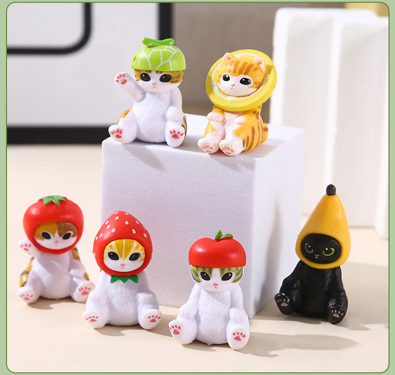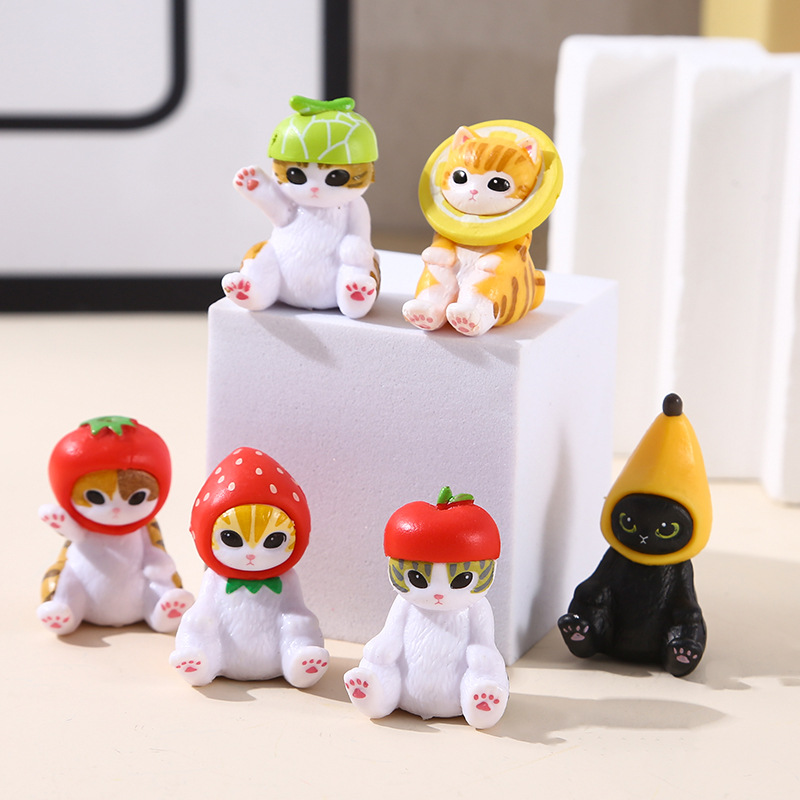 6가지 앉는 자세의 고양이, 푸샨디 상어 고양이, 귀여운 과일 딸기 바나나 고양이 인형, 데스크탑 미니 장식품스토어 가기