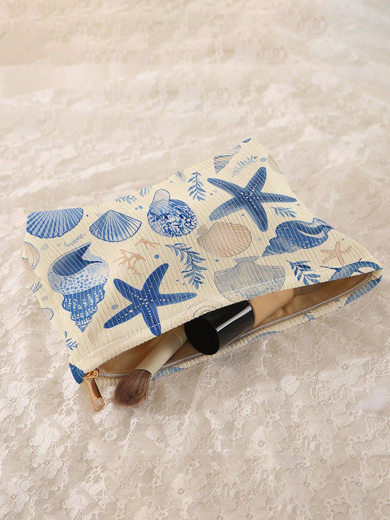 국경을 넘는 아마존 심플 해양생물 프린트 코듀로이 지퍼 경량 화장품 가방 다기능스토어 가기