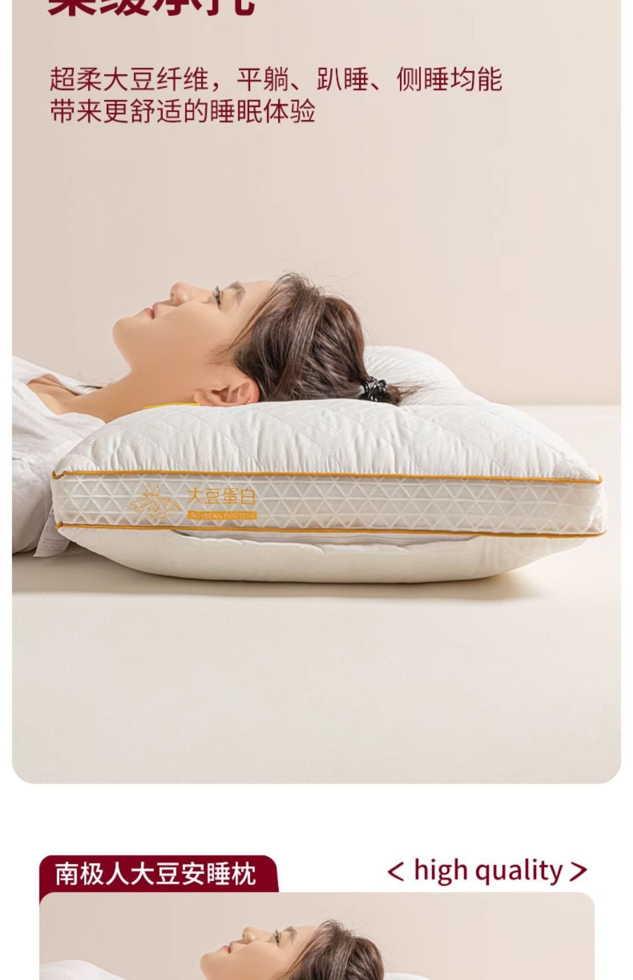 • A급 수면보조제-대두단백질 단면 낮은베개[쌍]