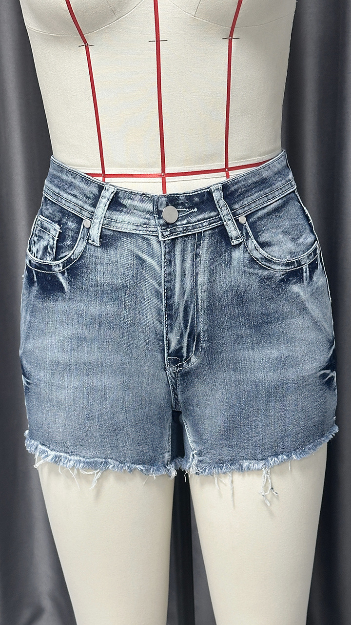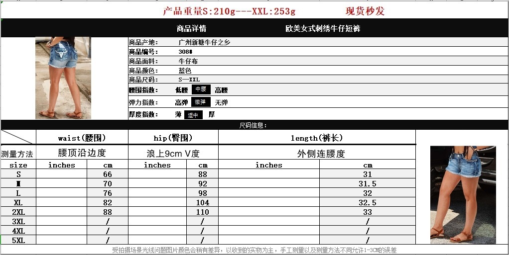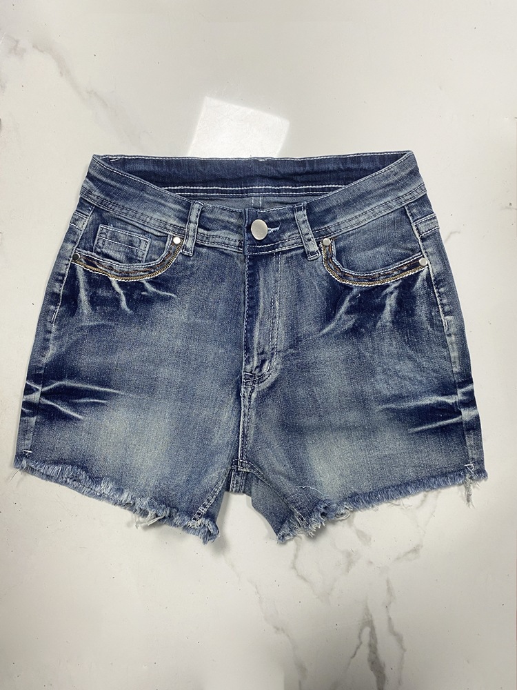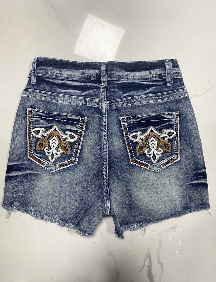 국경 간 아마존 대외 무역 도매 2025 여름 새로운 미국 복고풍 자수 슬림 로우 엣지 데님 반바지 여성용스토어 가기