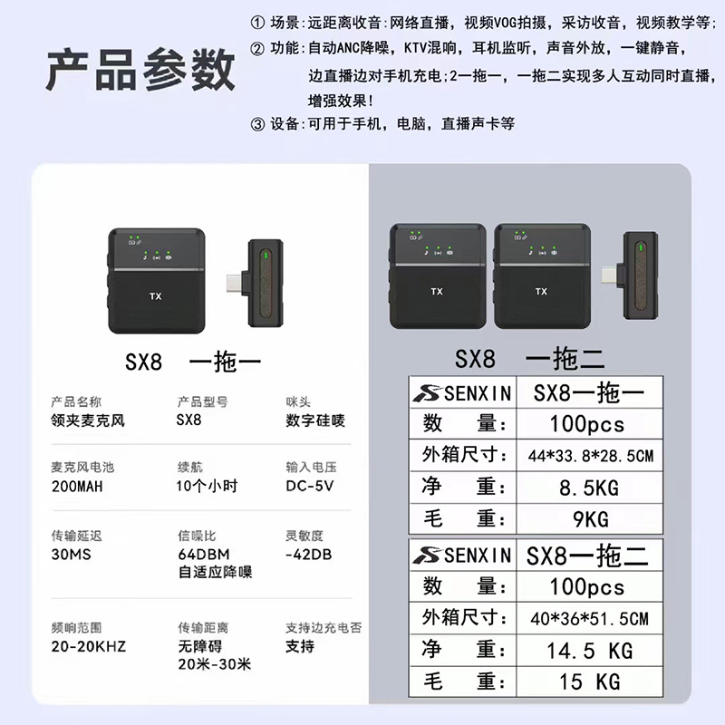 SX8 SX9 무선 라발리에 마이크 휴대 전화 라이브 짧은 비디오 야외 인터뷰 소음 감소 라이브 마이크스토어 가기