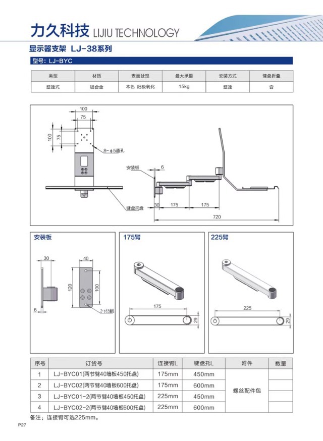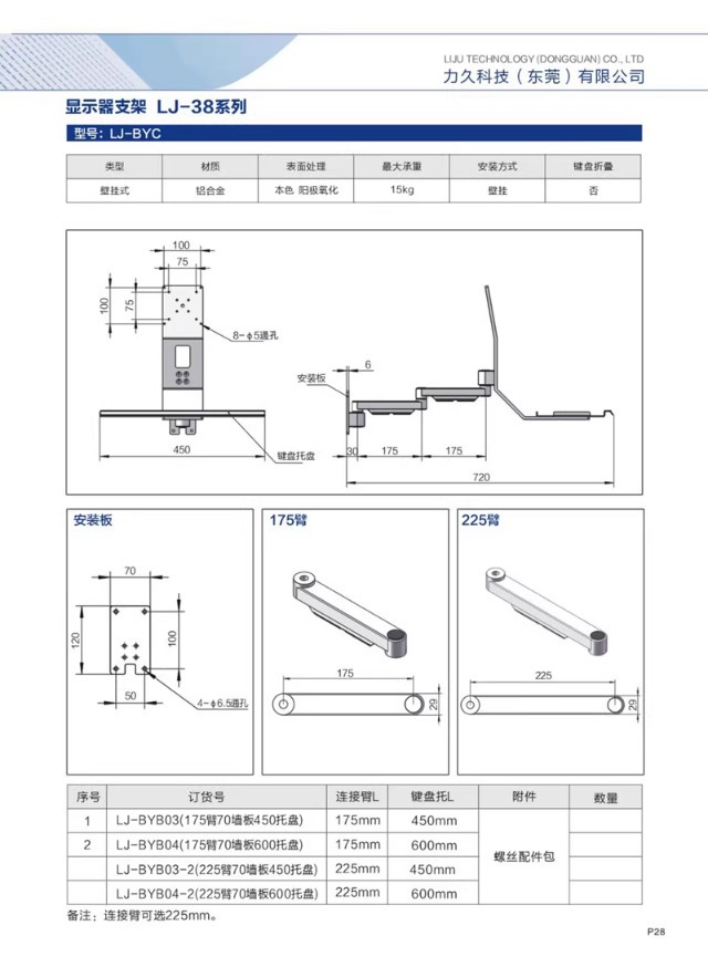 • LJ-BYC 0.15kg 섹션 175 암 70 벽면 패널 450 팔레트