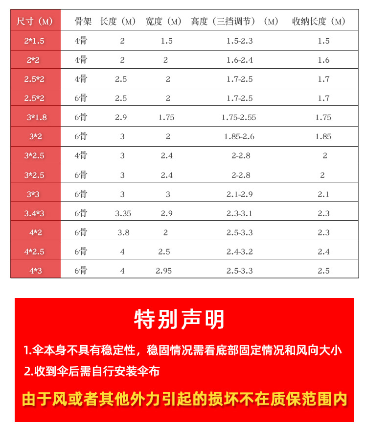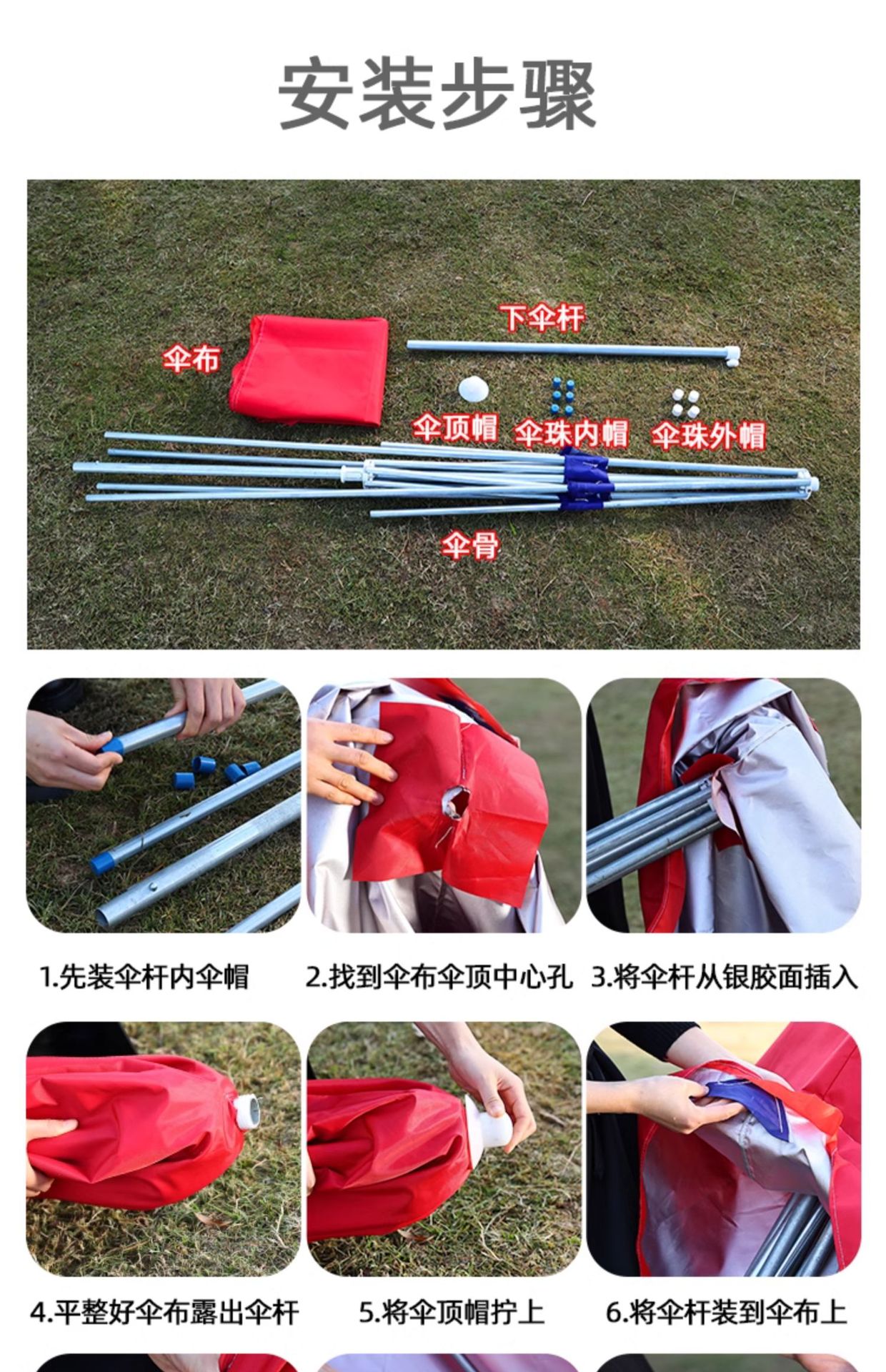 • 우산 볼드 레드 3.4×3 두꺼운 6갈비 + 베이스