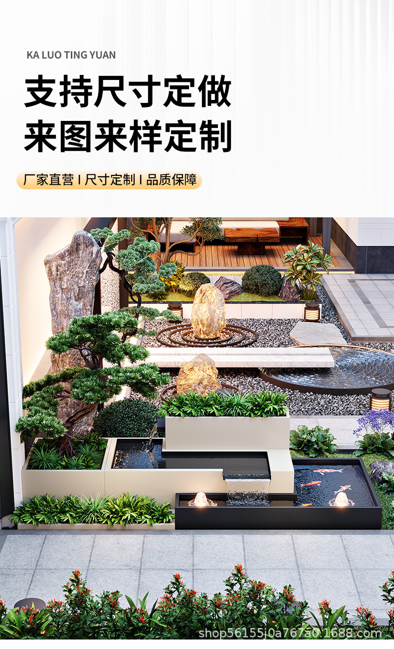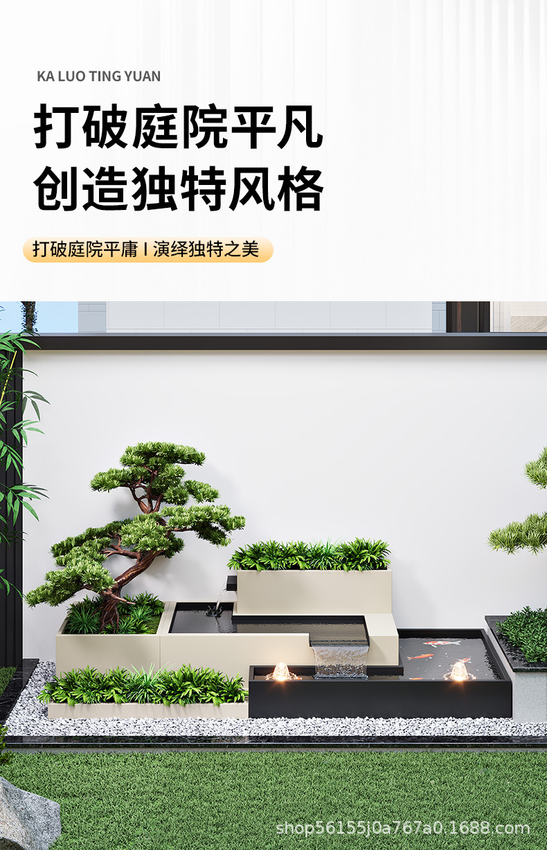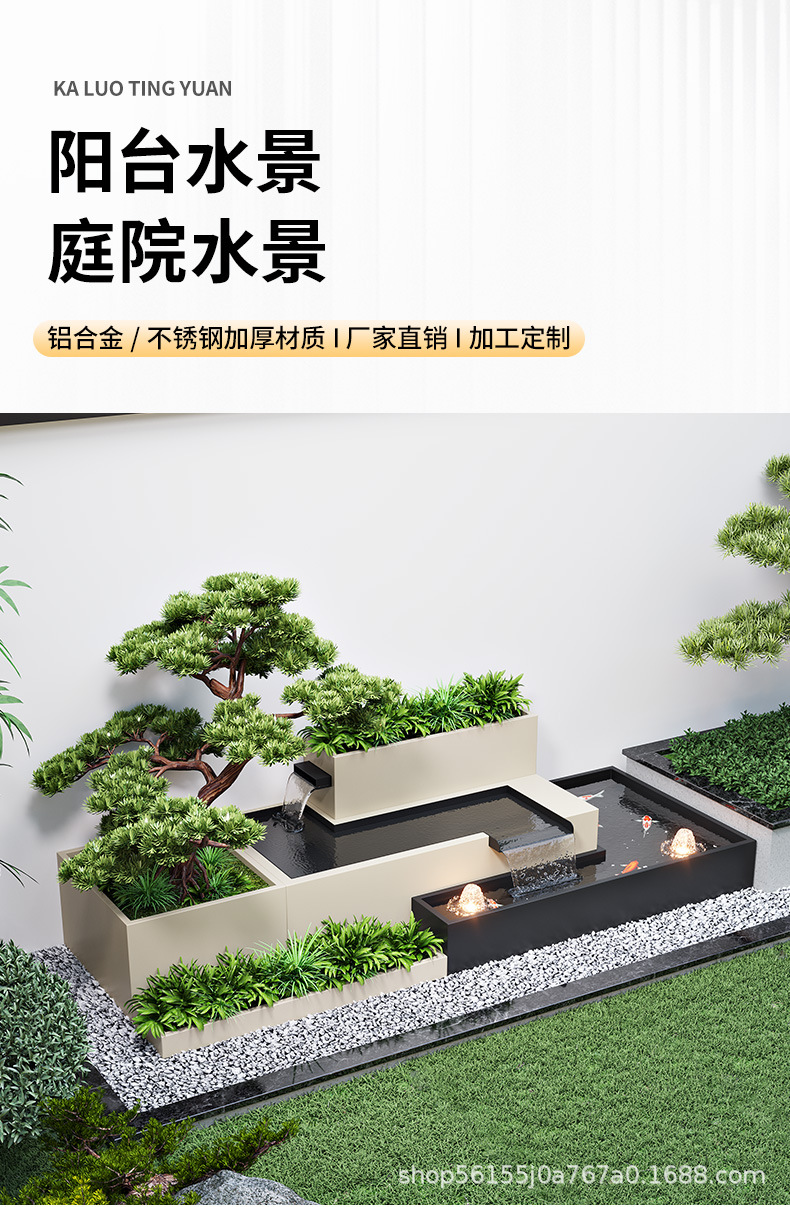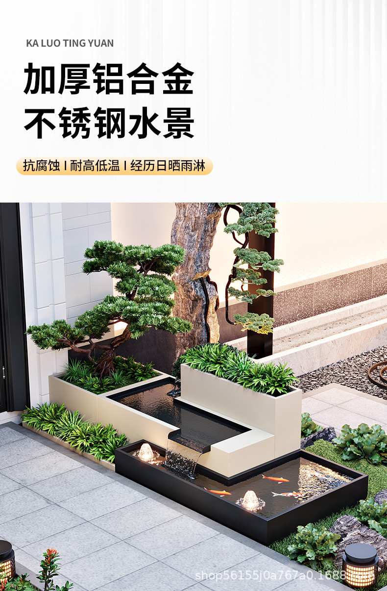 알루미늄 합금 야외 안뜰 흐르는 물 풍경 벽 정원 물고기 연못 화단 조합 스테인레스 스틸 스크린 파티션 벽스토어 가기