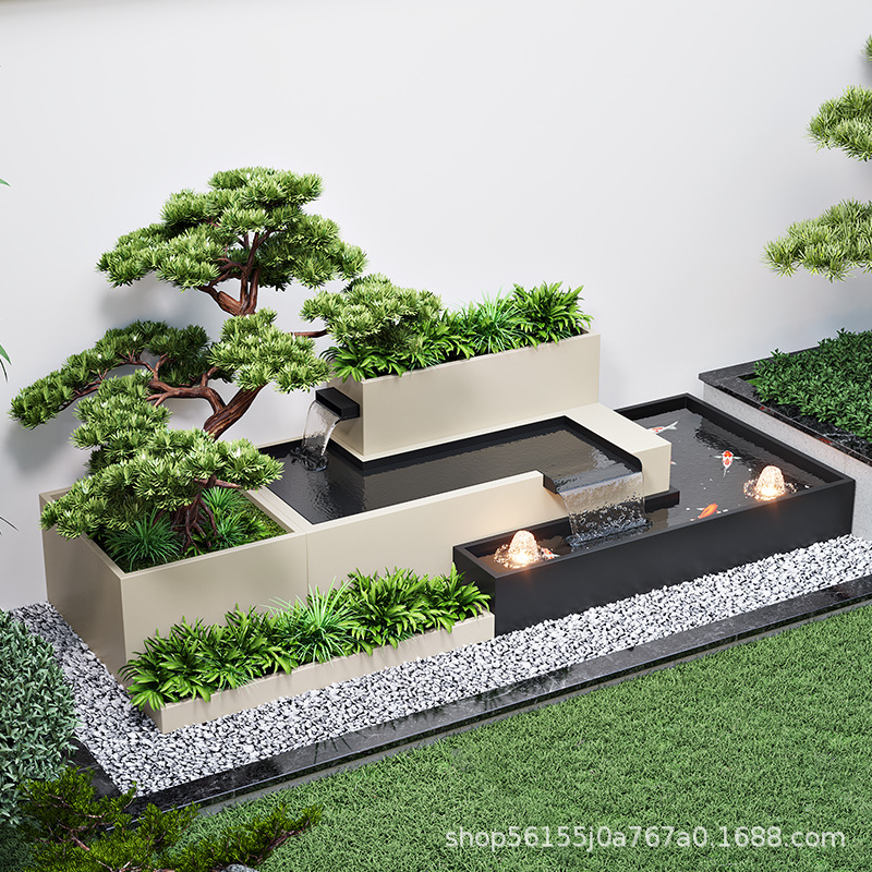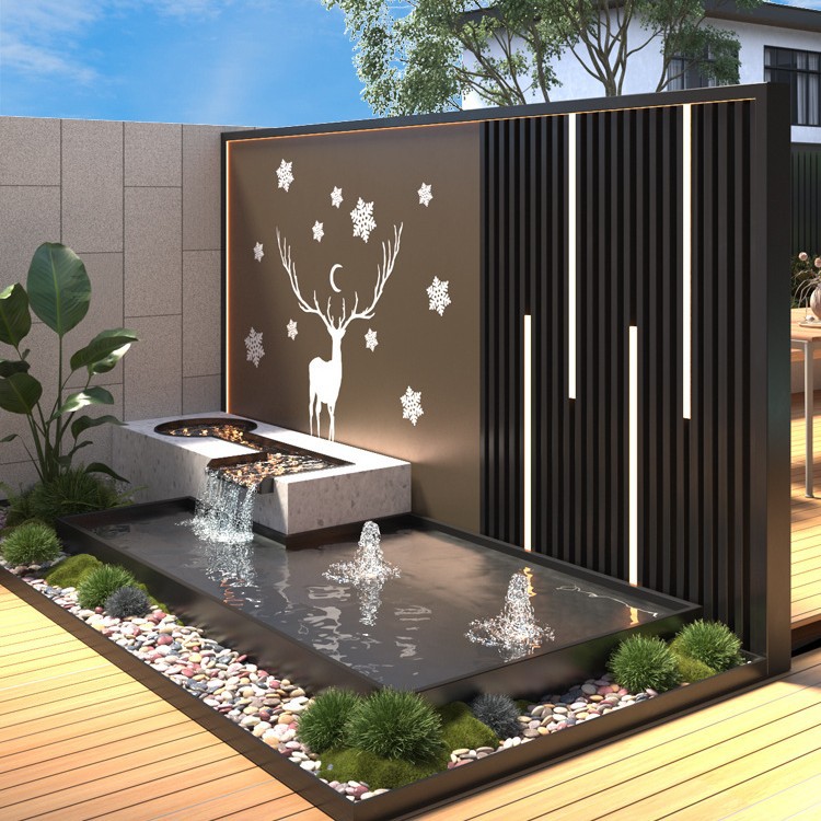 알루미늄 합금 야외 안뜰 흐르는 물 풍경 벽 정원 물고기 연못 화단 조합 스테인레스 스틸 스크린 파티션 벽