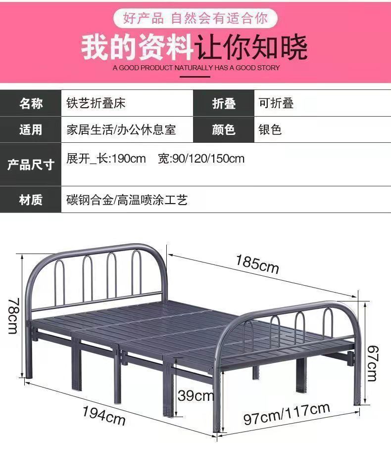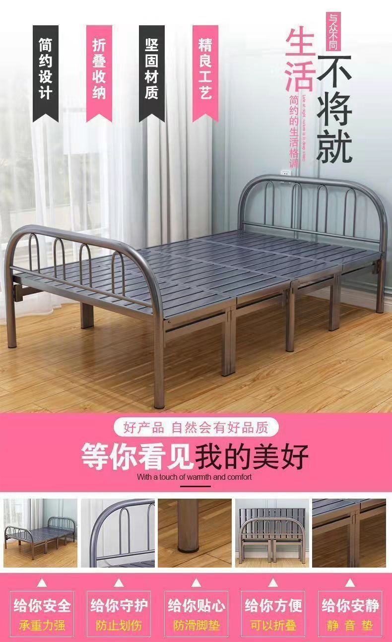 전철제 접이식 침대 가정용 싱글 침대 더블 침대 성인 간이 기숙사 점심 시간 낮잠 침대 임대 주택 침대스토어 가기