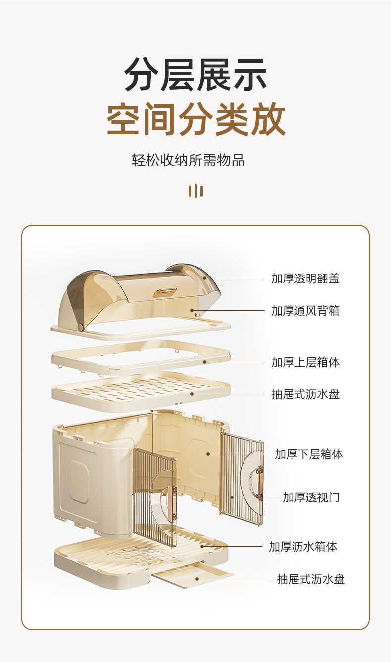 식기 보관함, 2단 2층 식기대형 수납선반, 접시 및 식기장, 소형 임대주택 배수구 식기대스토어 가기