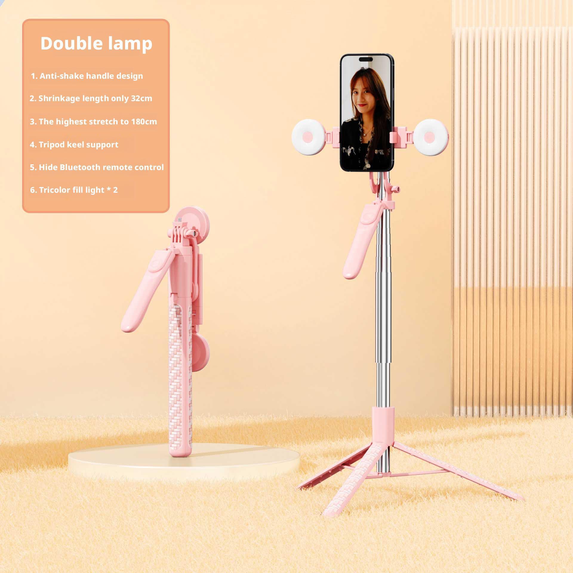 • Z18-더블 라이트 핑크 [ 1.8m + 안정화 핸들 + 배터리 리모콘 + 대형 원형 조명 2개]