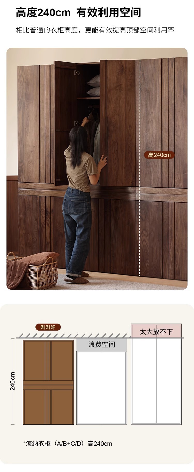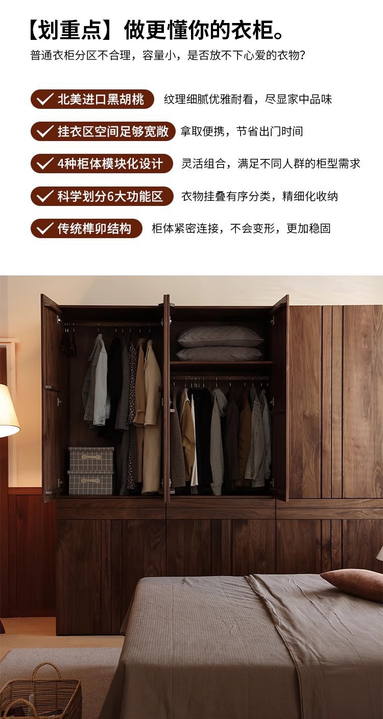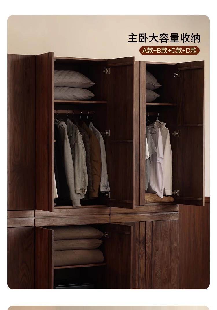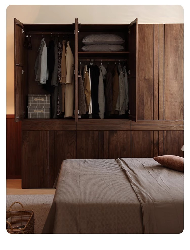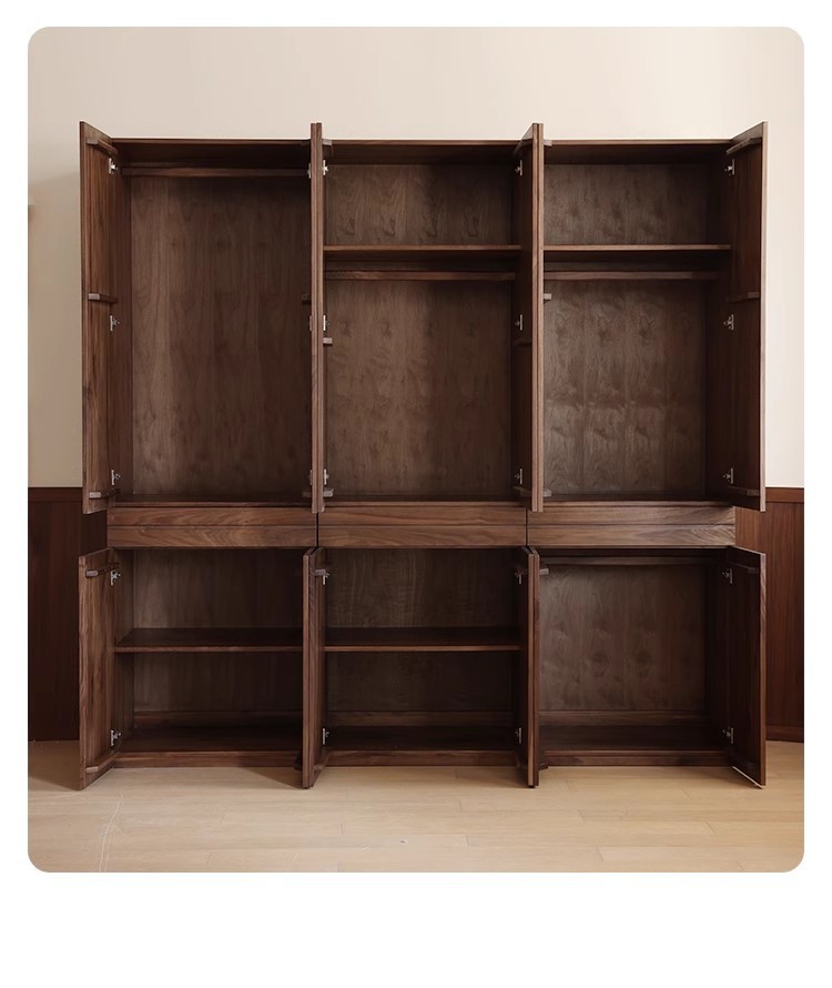 북미 전체 단단한 나무 검은 호두 옷장 현대 간단한 통나무 스타일의 보관 캐비닛 대용량 체리 나무 보관 캐비닛스토어 가기