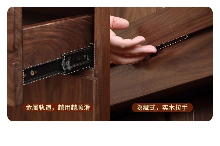 북미 전체 단단한 나무 검은 호두 옷장 현대 간단한 통나무 스타일의 보관 캐비닛 대용량 체리 나무 보관 캐비닛