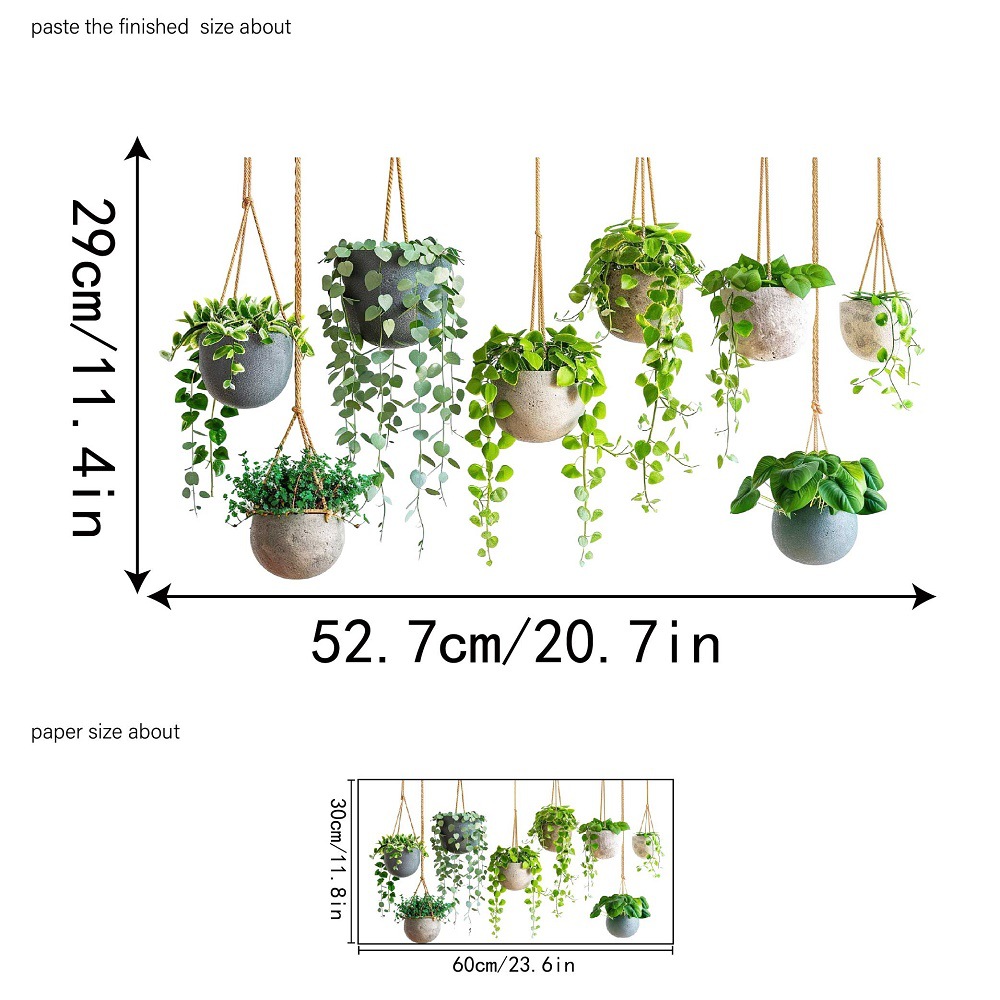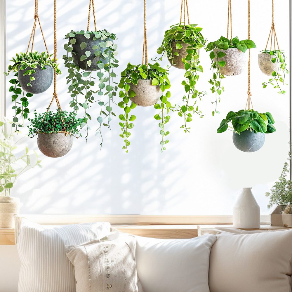 Aike JD3635 신선한 녹색 식물 잎 교수형 바구니 스티커 유리 스티커 침실 발코니 유리 장식 정전기 스티커스토어 가기