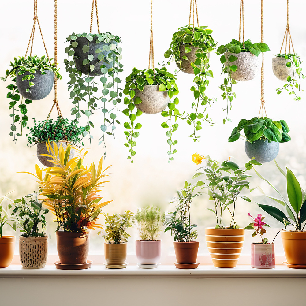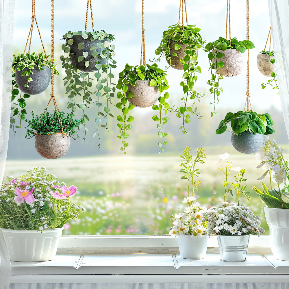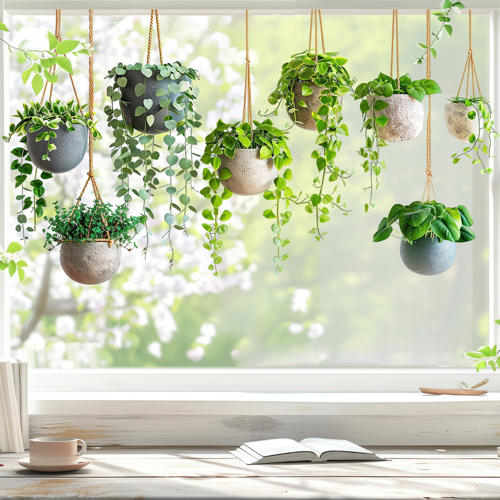 Aike JD3635 신선한 녹색 식물 잎 교수형 바구니 스티커 유리 스티커 침실 발코니 유리 장식 정전기 스티커