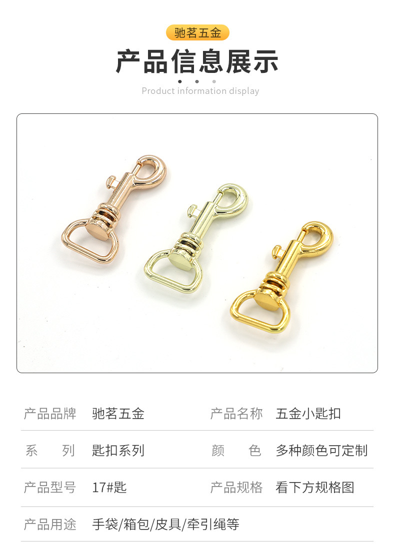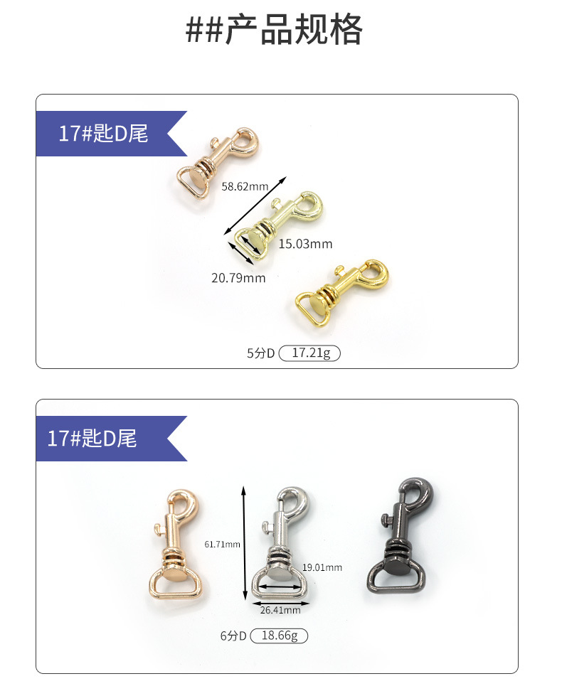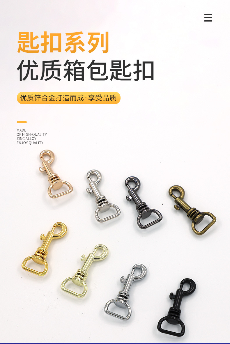 가방 하드웨어 액세서리 DIY 견인 로프 후크 버클 합금 개 버클 회전 후크 열쇠 고리 총 버클 제조 업체 도매스토어 가기