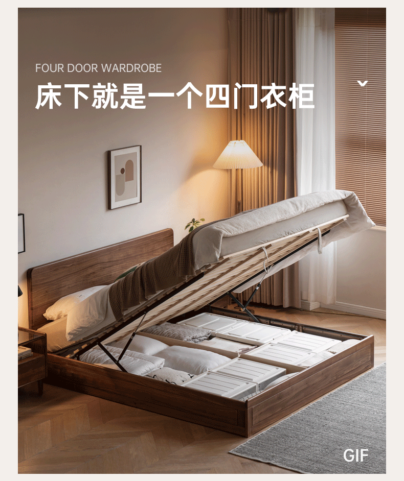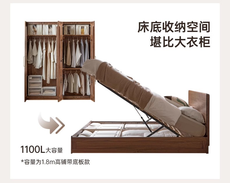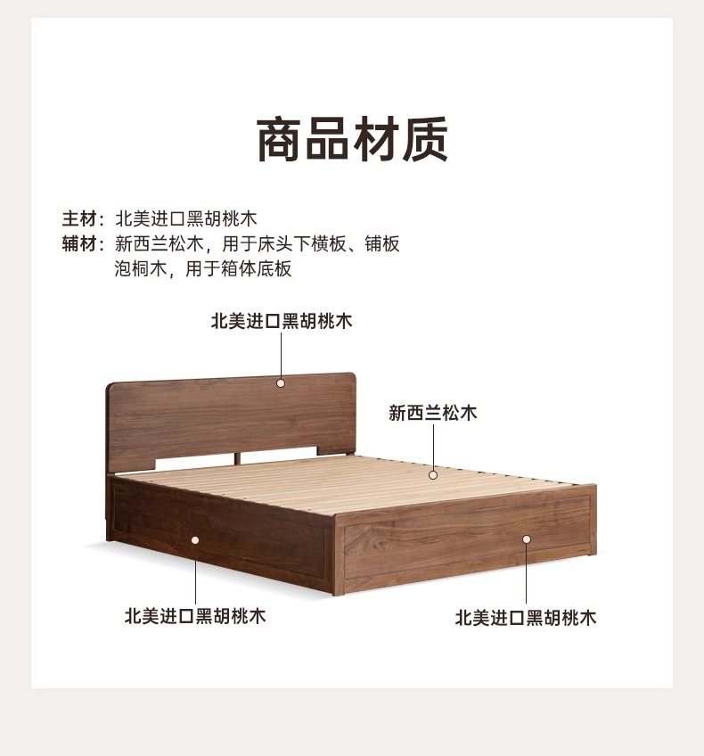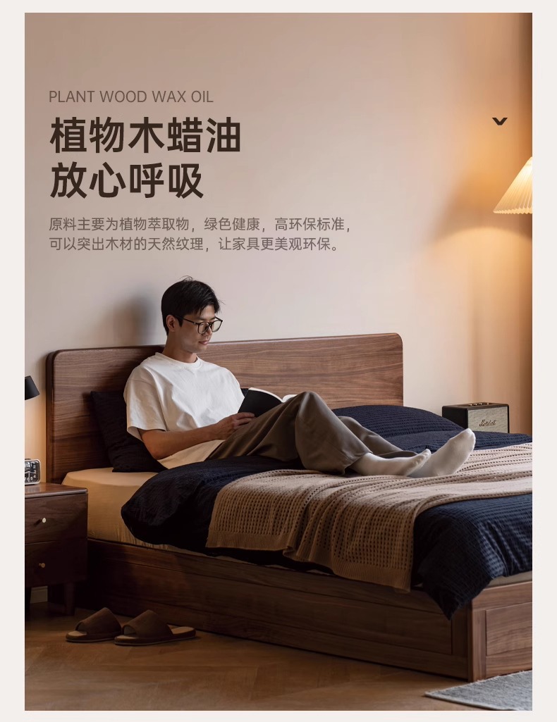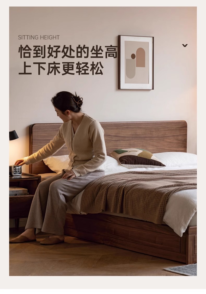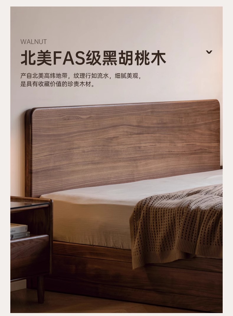 북미 검은 호두나무 원목 침대 더블 침대 호두나무 침대 프레임 마스터 침실 박스 침대스토어 가기
