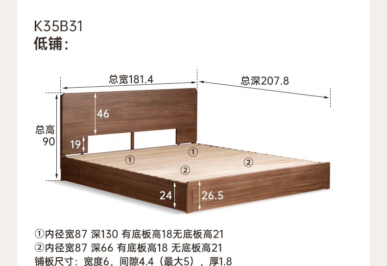 북미 검은 호두나무 원목 침대 더블 침대 호두나무 침대 프레임 마스터 침실 박스 침대
