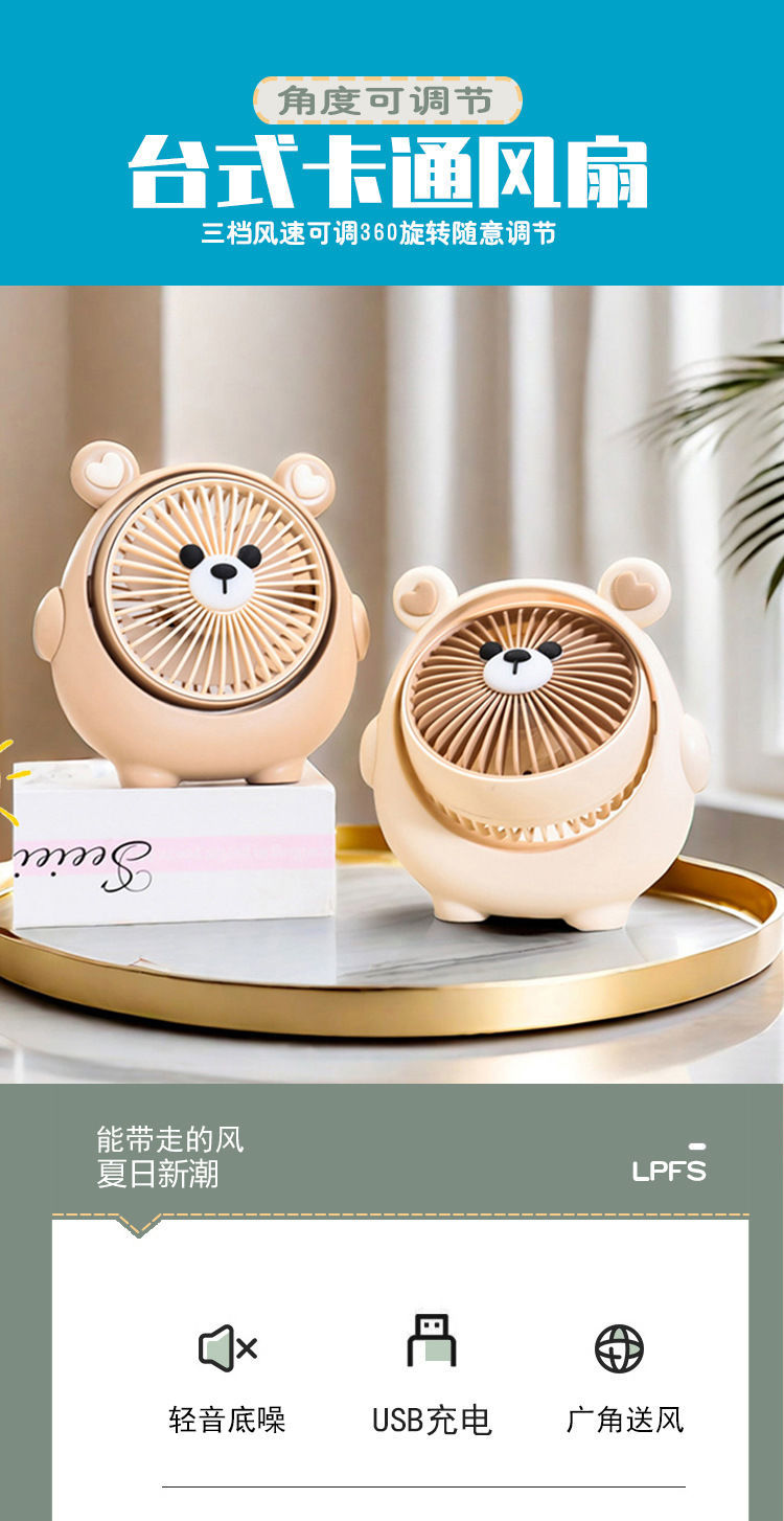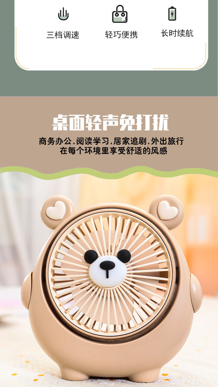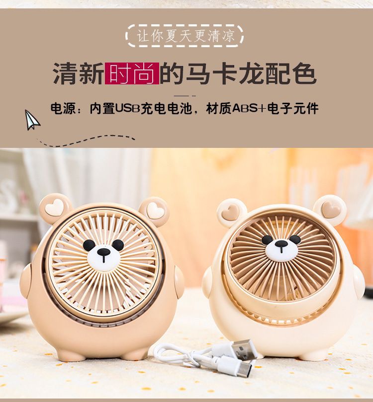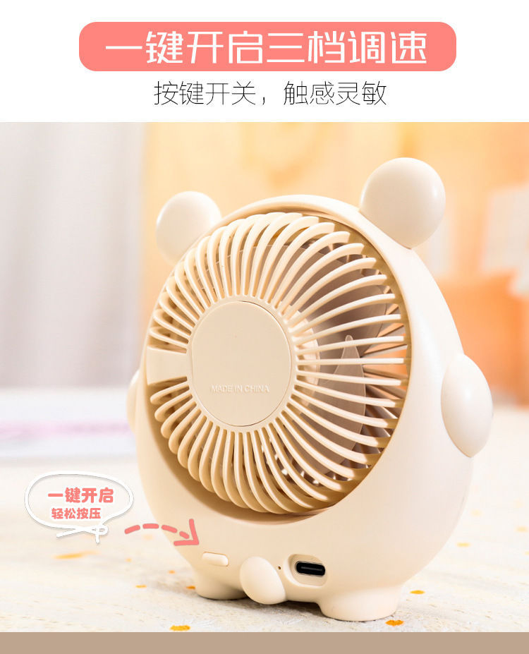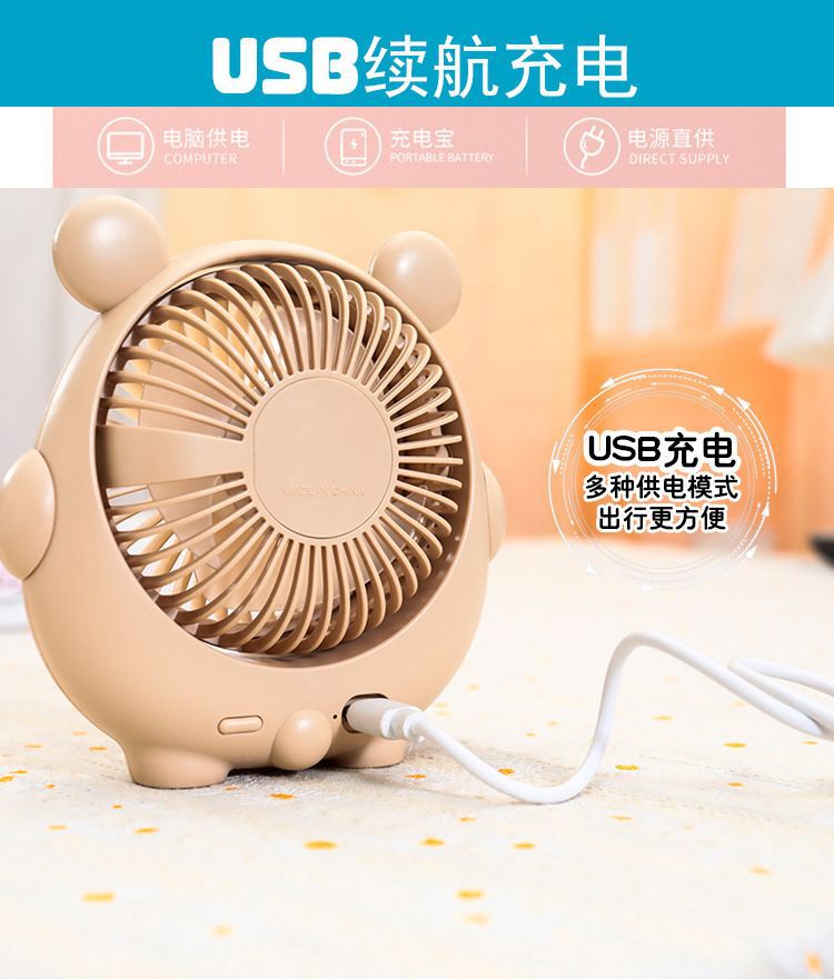 새로운 귀여운 강아지 귀여운 소형 팬 USB 충전식 3단 각도 조절 가능한 데스크탑 침대 옆 가정용 휴대용 선풍기스토어 가기