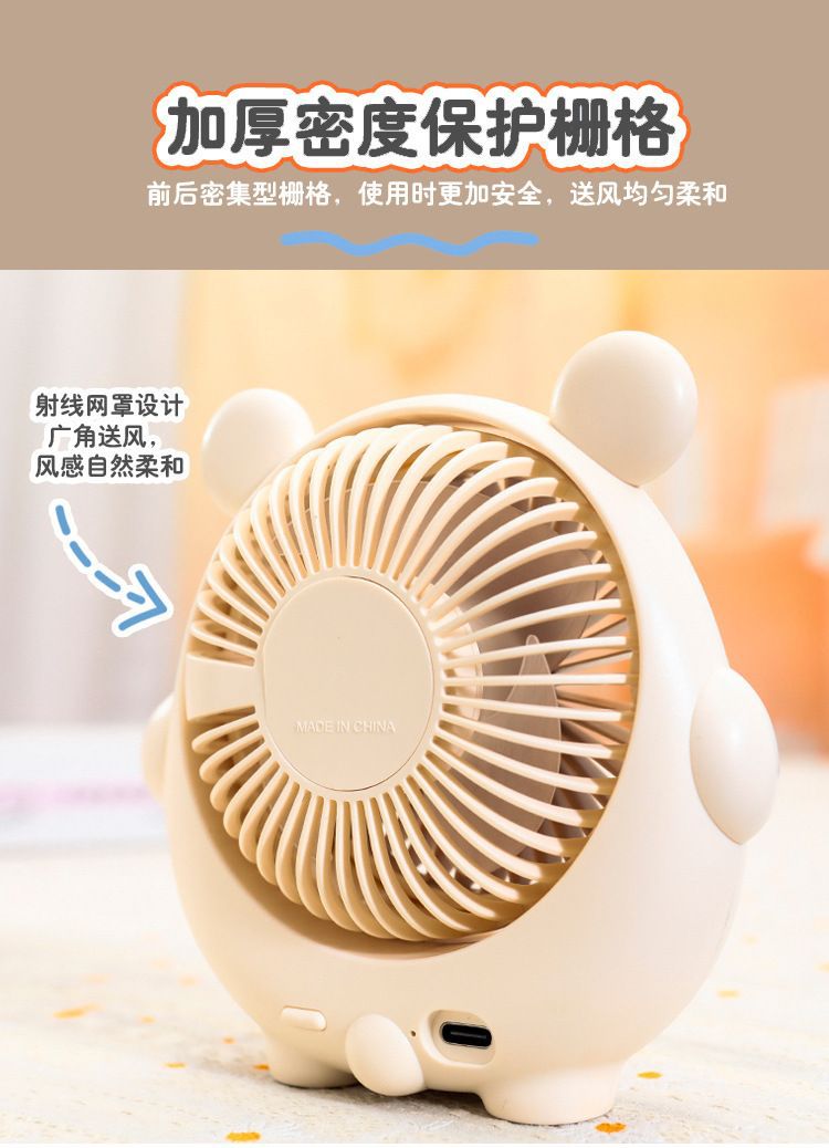 새로운 귀여운 강아지 귀여운 소형 팬 USB 충전식 3단 각도 조절 가능한 데스크탑 침대 옆 가정용 휴대용 선풍기