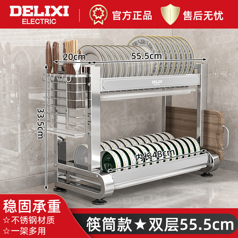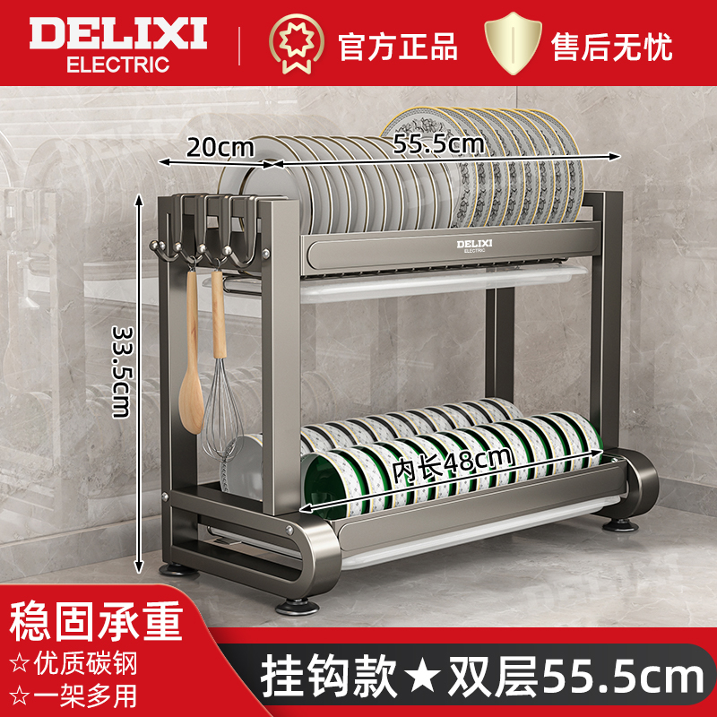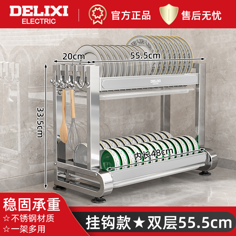 • 스테인레스 스틸 솔리드 컬러 - 접시걸이 더블 레이어 55.5CM+ABS 후크 4개_? []