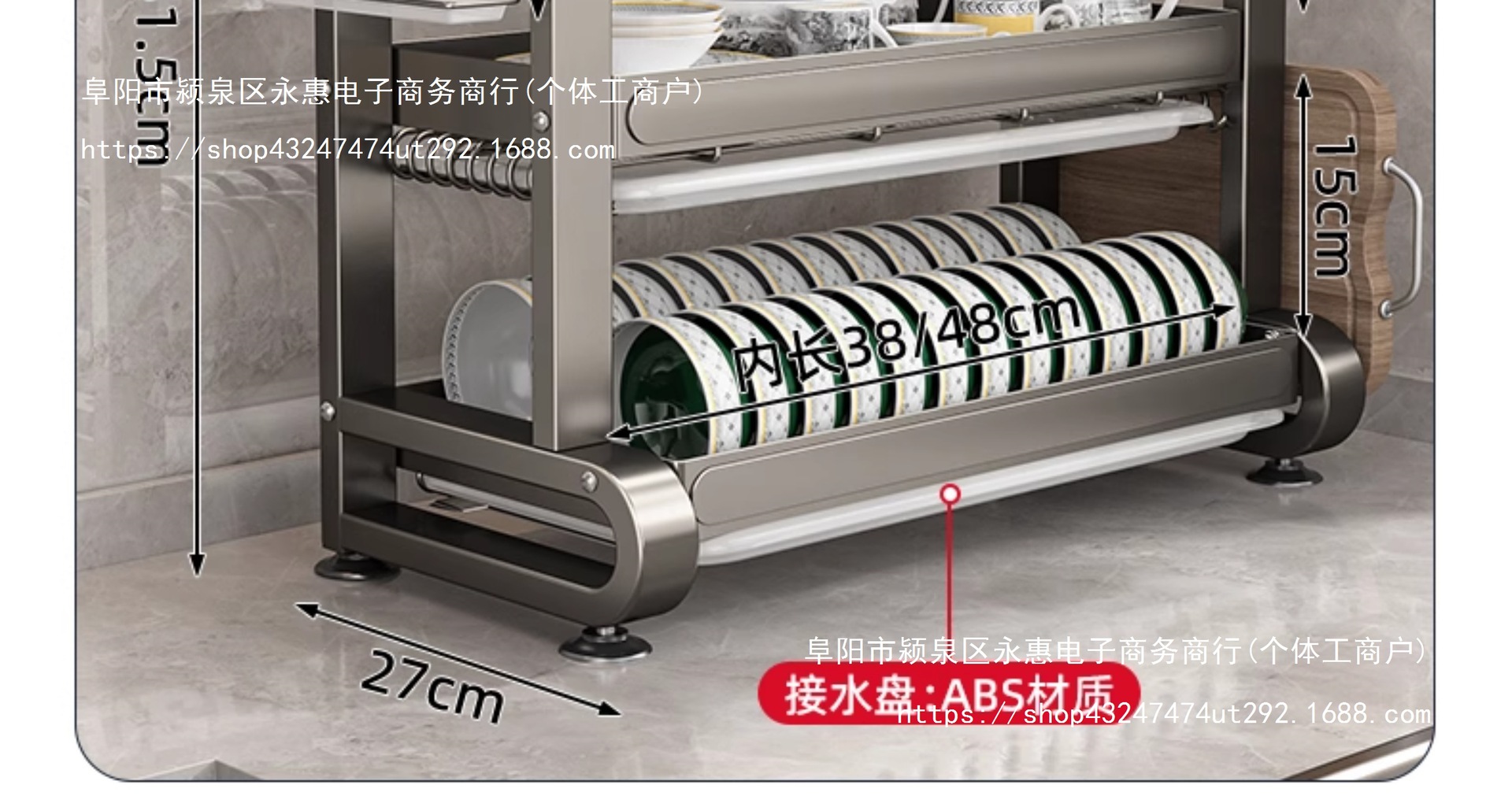 • 스테인레스 스틸 솔리드 컬러 - 접시걸이 더블 레이어 43CM+ABS 후크 4개_? []