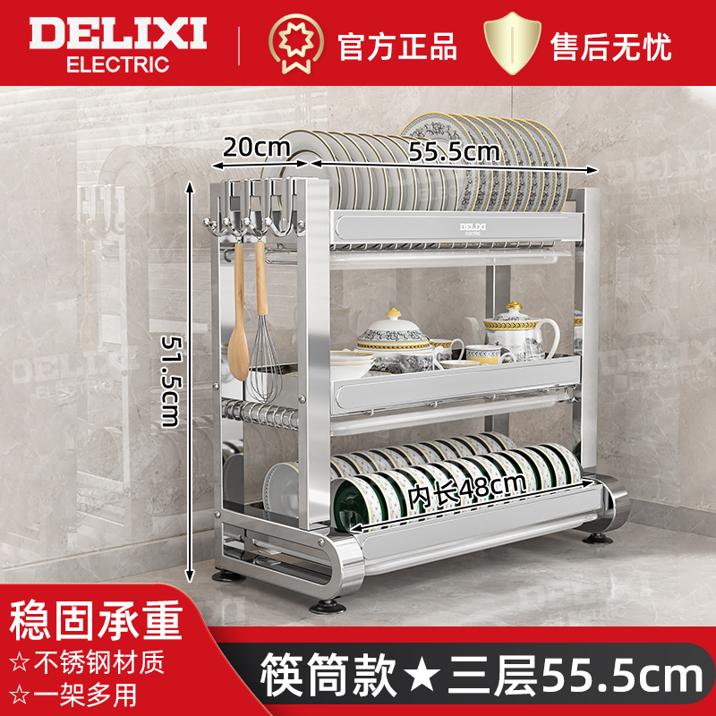 • 스테인레스 스틸 솔리드 컬러 - 3단 접시걸이 55.5CM+ABS 후크 4개_? []