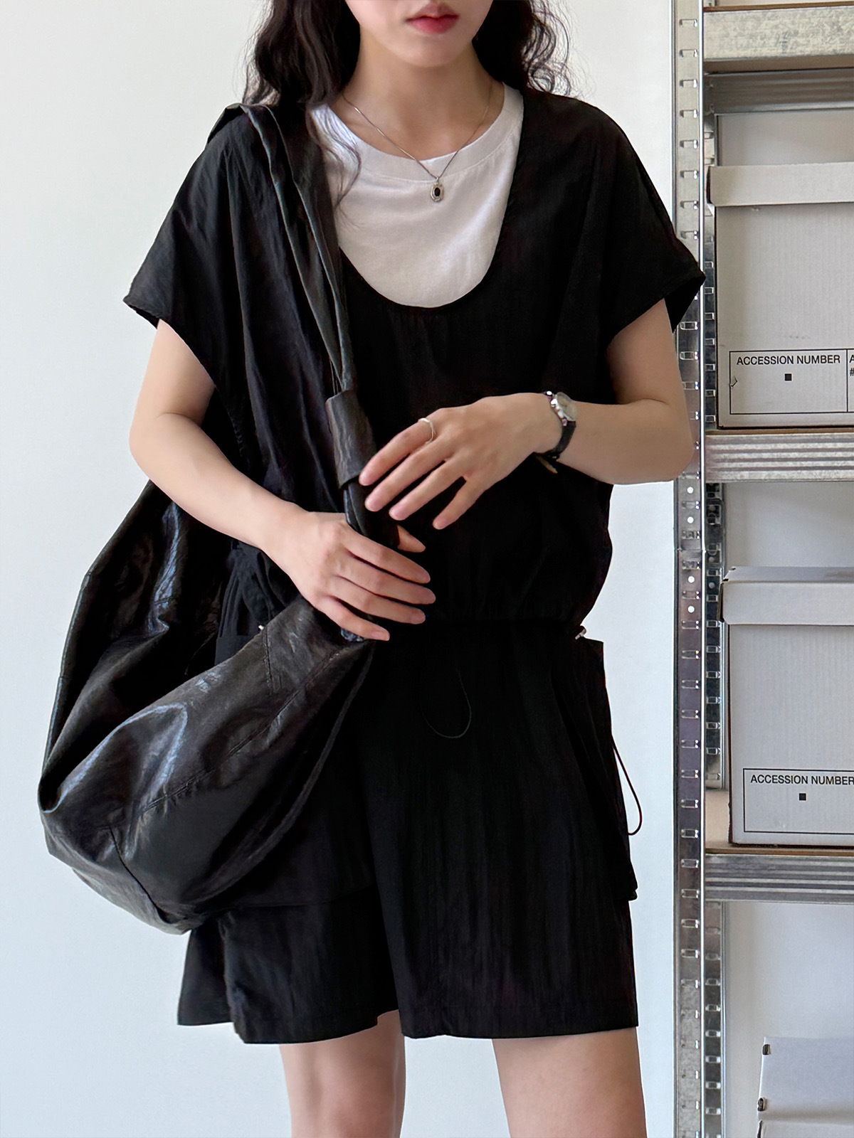 Lushi 한국 캐주얼 스타일 가짜 투피스 스플 라이스 스커트 여성 여름 새 스타일 원피스 작업복 드로스트링 슈트 스커트 0893