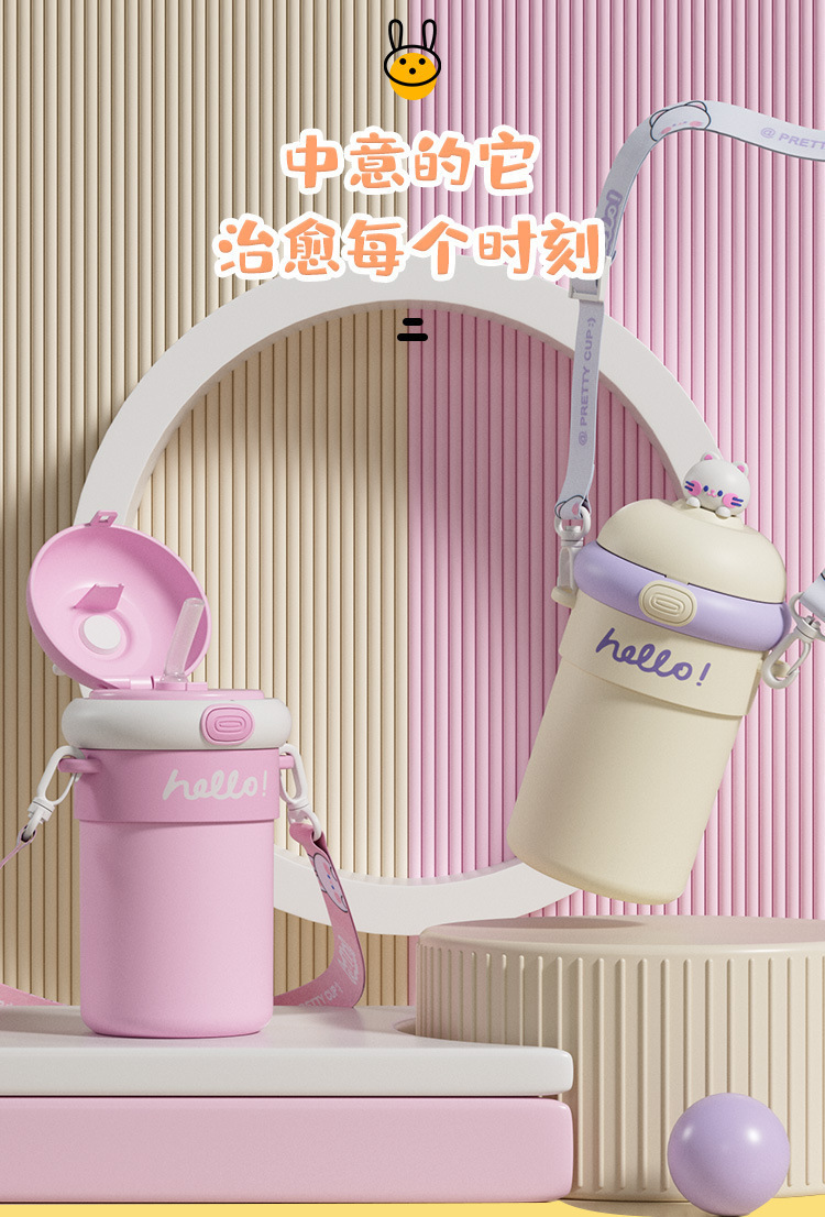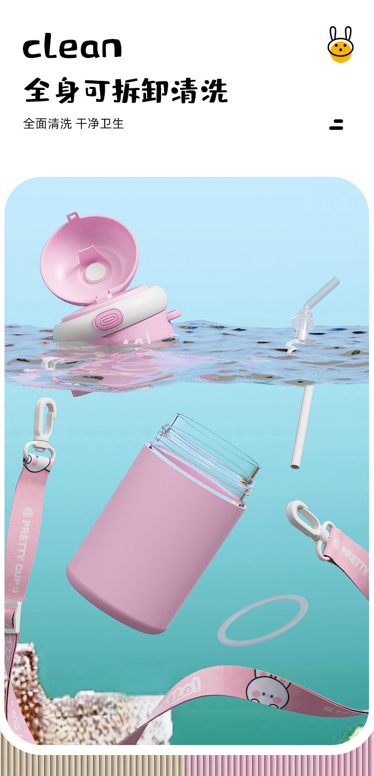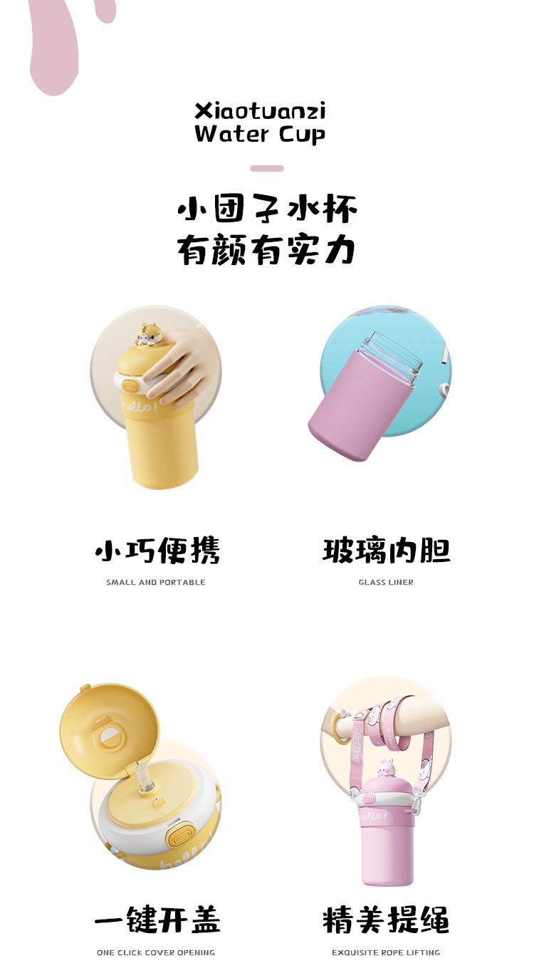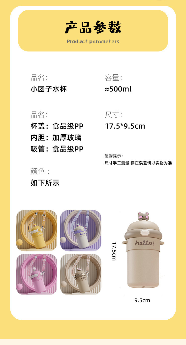 작은 찐빵 물컵, 휴대용 대각선 유리 컵, 대용량 밀짚 컵, 사무실 가정용 화상 방지 밀짚 컵