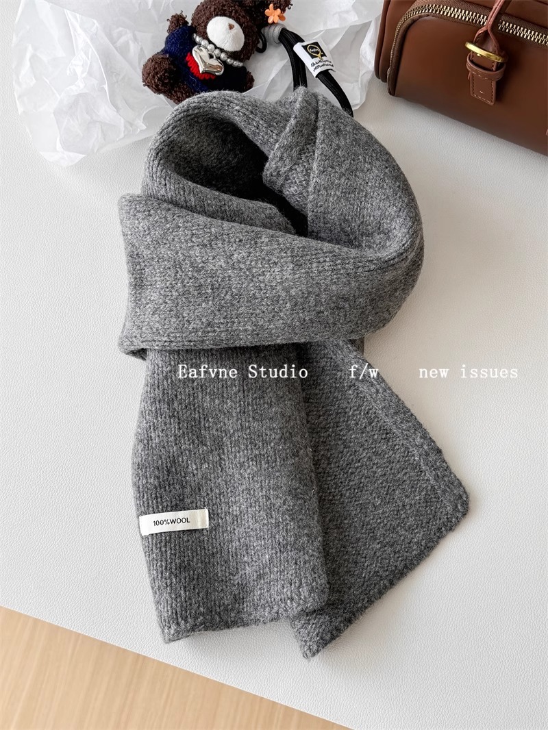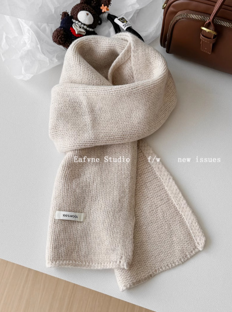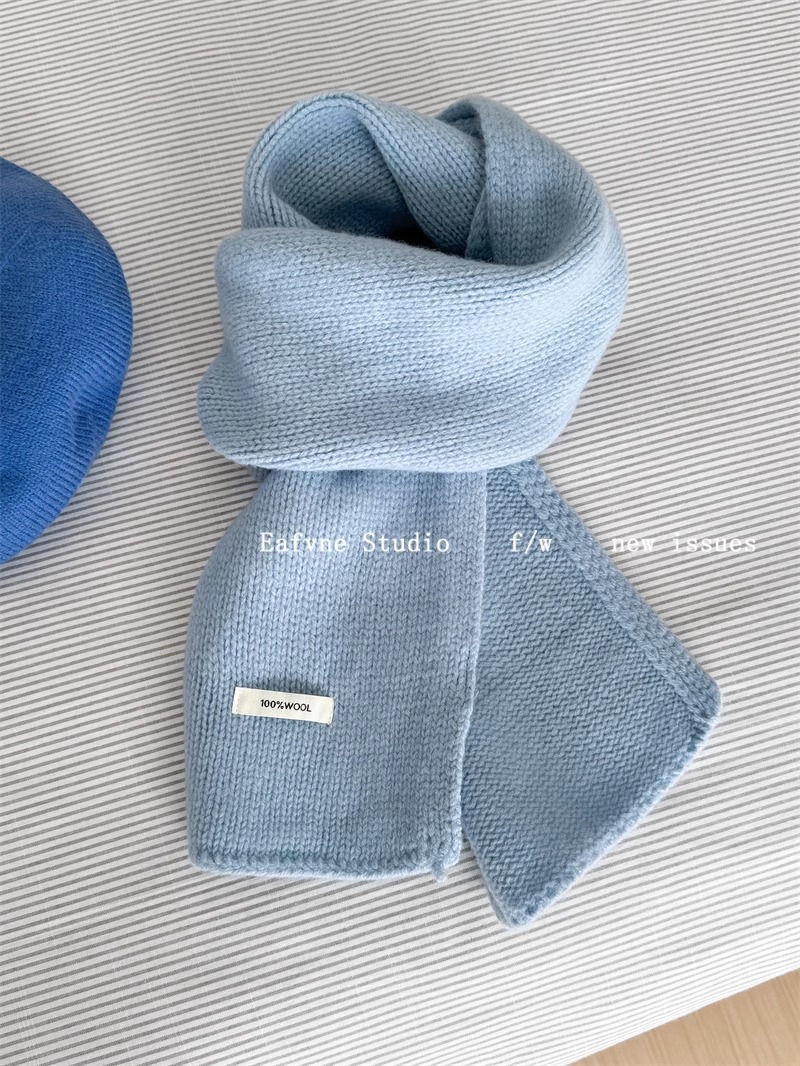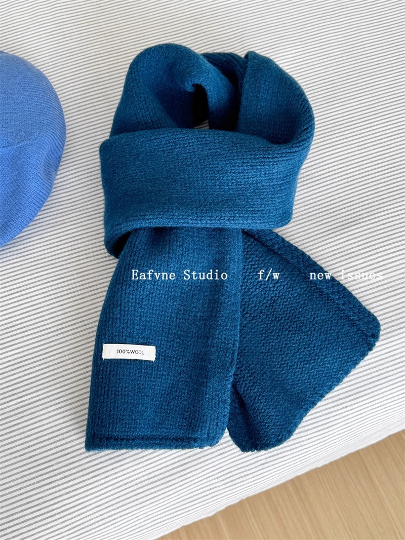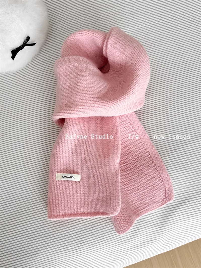 한국 캔디 컬러 100% 호주산 울 스카프 여성 가을, 겨울 하이 엔드 다목적 복고풍 두꺼운 니트 스카프