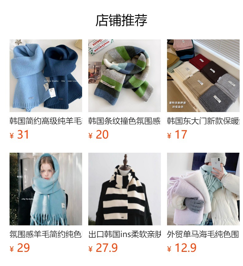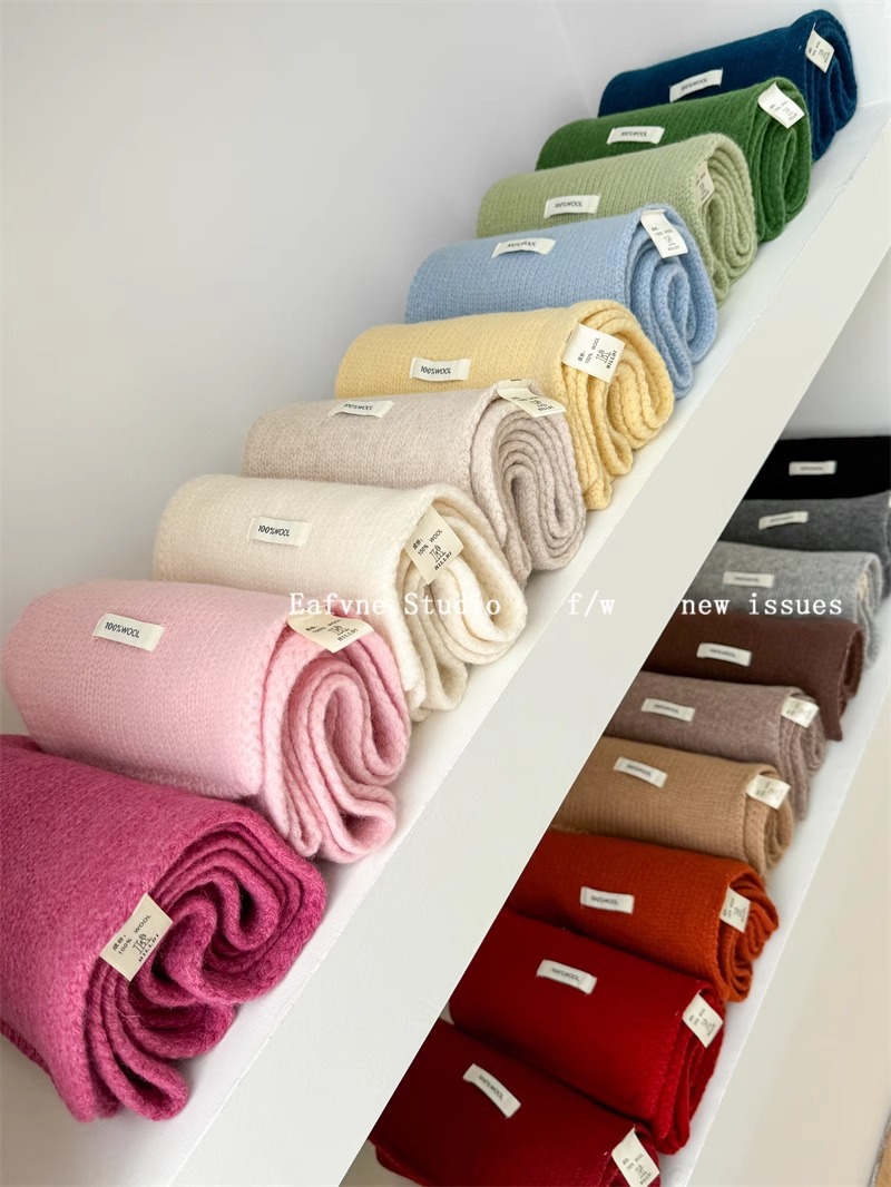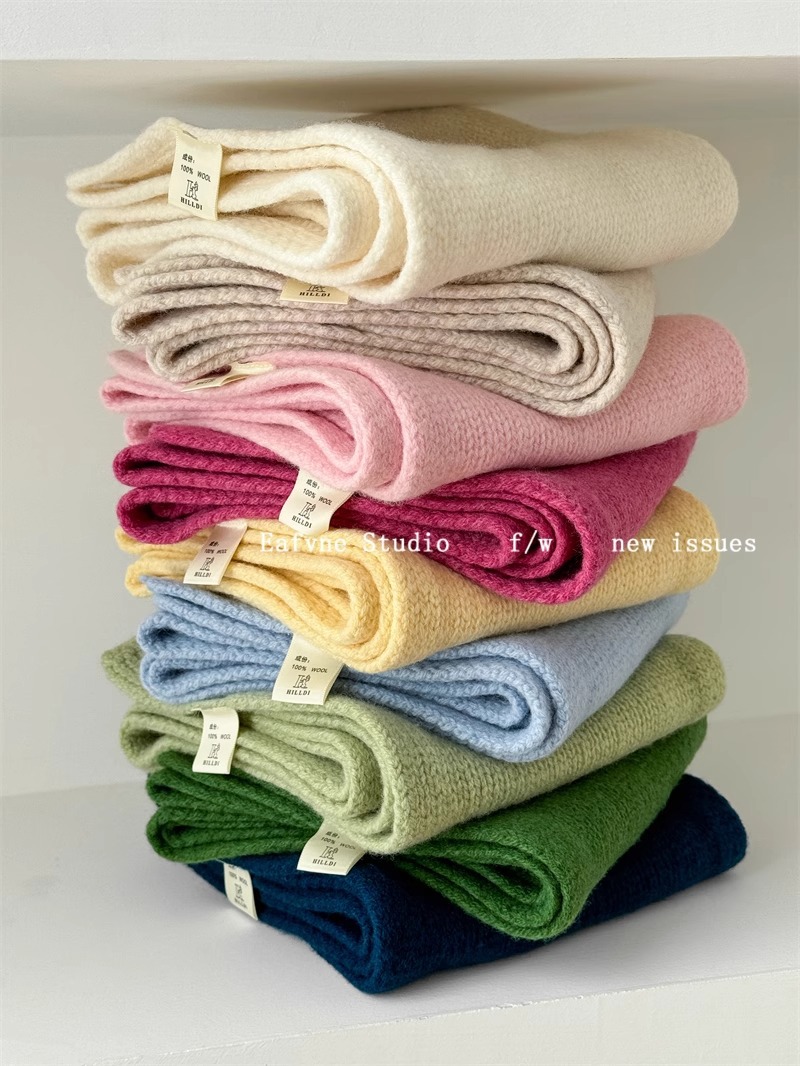 한국 캔디 컬러 100% 호주산 울 스카프 여성 가을, 겨울 하이 엔드 다목적 복고풍 두꺼운 니트 스카프스토어 가기