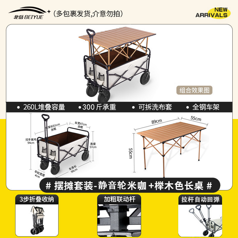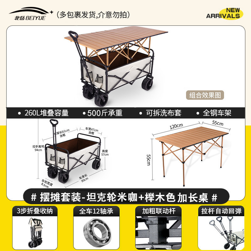 • 카키 [이중 두꺼운 옥스포드 천]-대형/ 8inch 고무 바퀴 + 스톨 확장 테이블