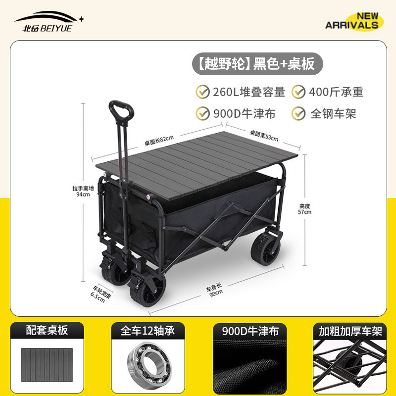 • 블랙 [이중 두꺼운 옥스포드 천] - 대형 / 8inch 고무 바퀴 + 스톨 확장 테이블