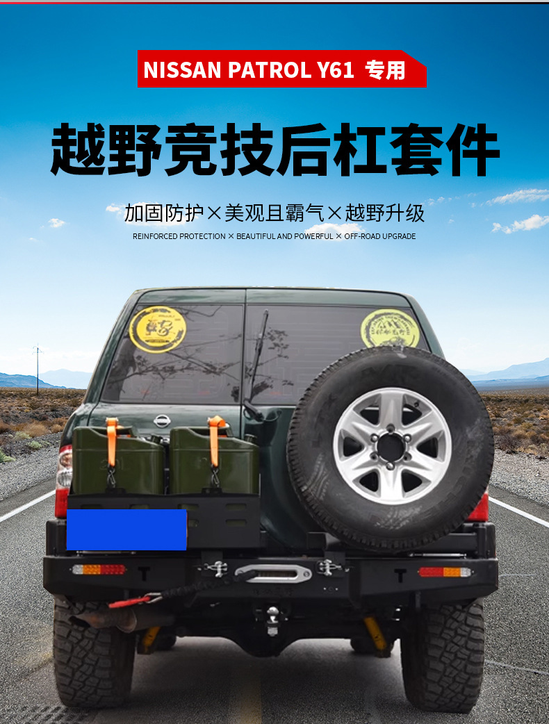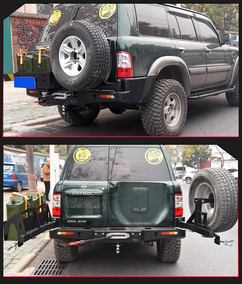 닛산 패트롤 Y61 리어 범퍼에 적합 Patrol 리어 범퍼 충돌 방지 범퍼 스페어 타이어 랙 오일 드럼 랙스토어 가기