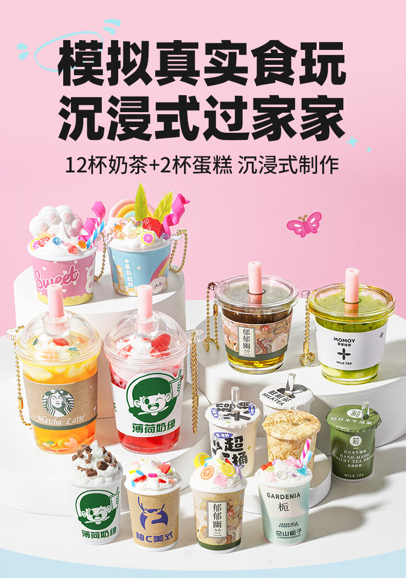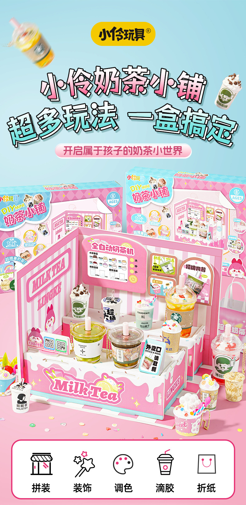 샤오링 장난감 미니어처 장면 푸드 플레이트 유행 장난감 도시락 밀크티 가게 미니 생일 선물 DIY 미니 하우스 교육용 장난감스토어 가기