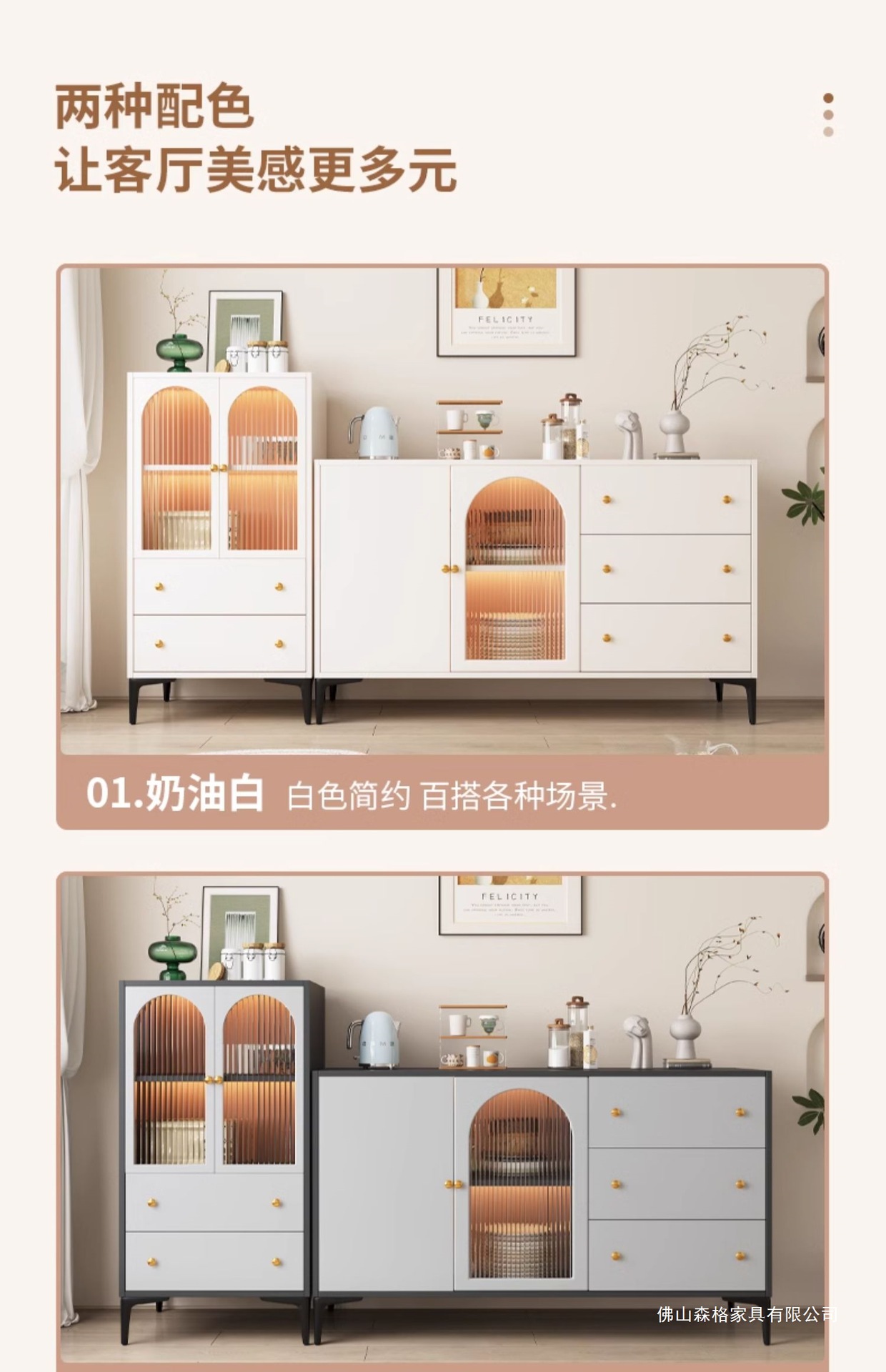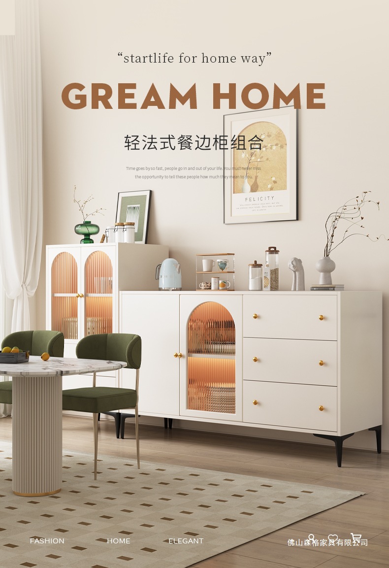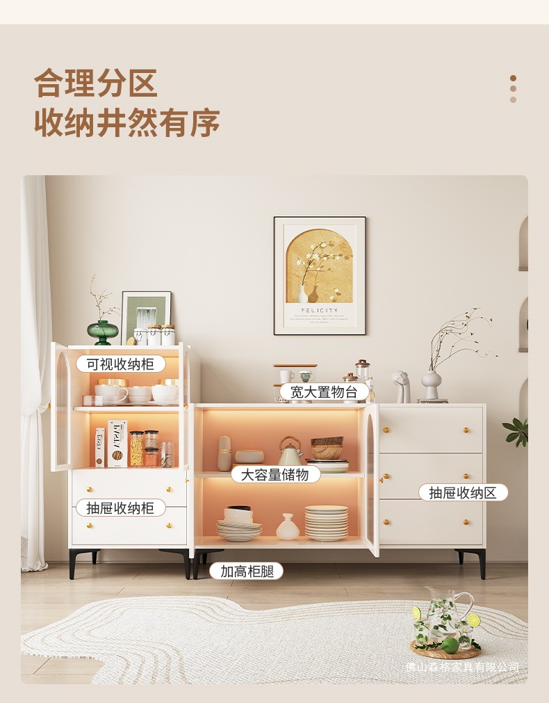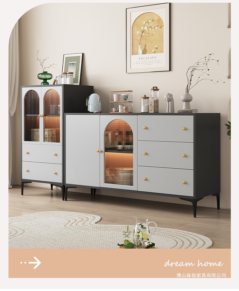 찬장 프렌치 모던 심플 일체형 서랍장 벽걸이 수납장 라이트 럭셔리 주방 캐비닛 차 수납장