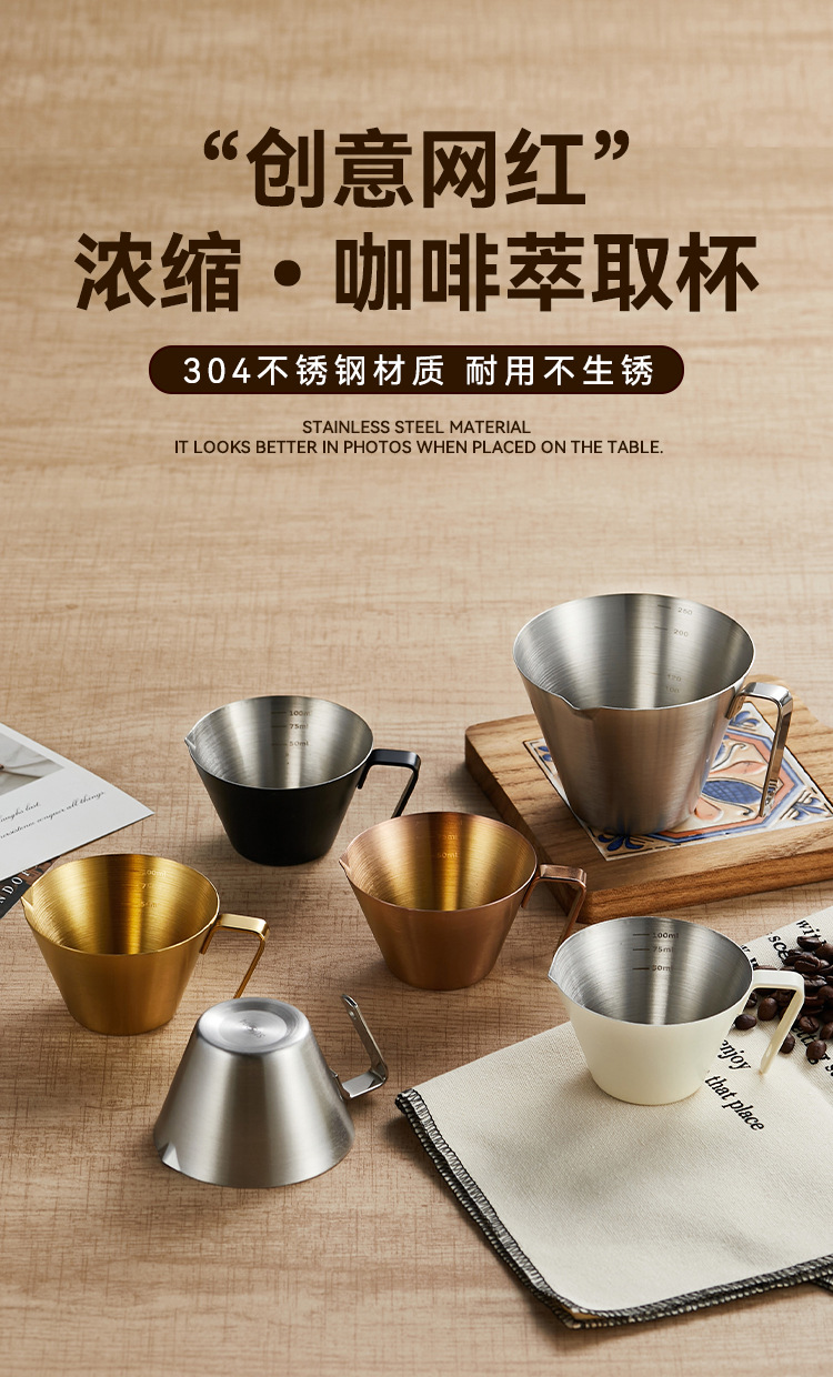 저울이있는 304 스테인레스 스틸 커피 추출 컵, 에스프레소 컵, 휴대용 온스 컵, 우유 컵, 액체 컵스토어 가기