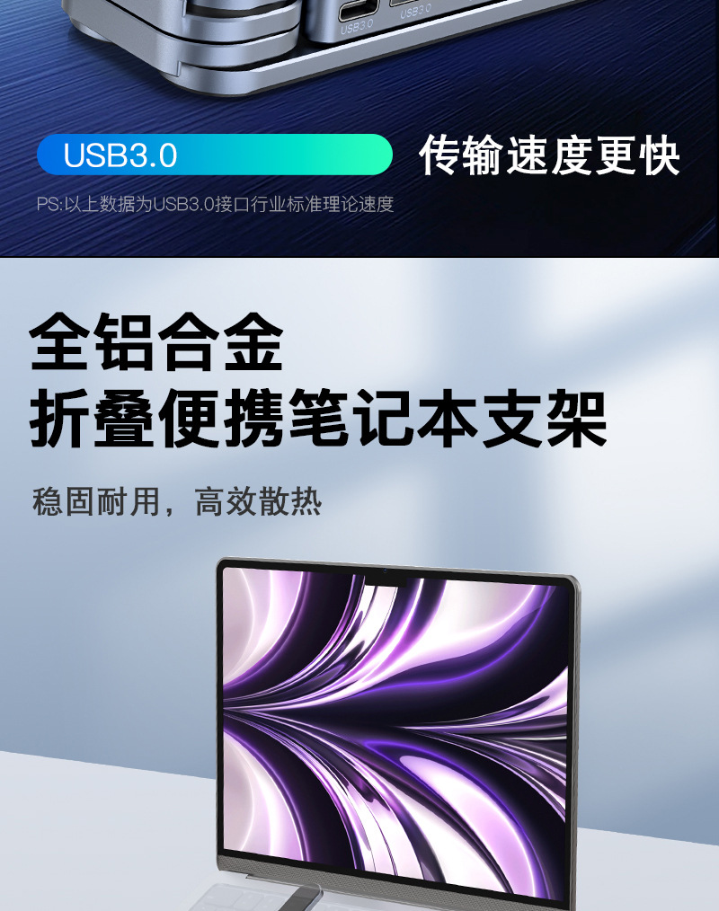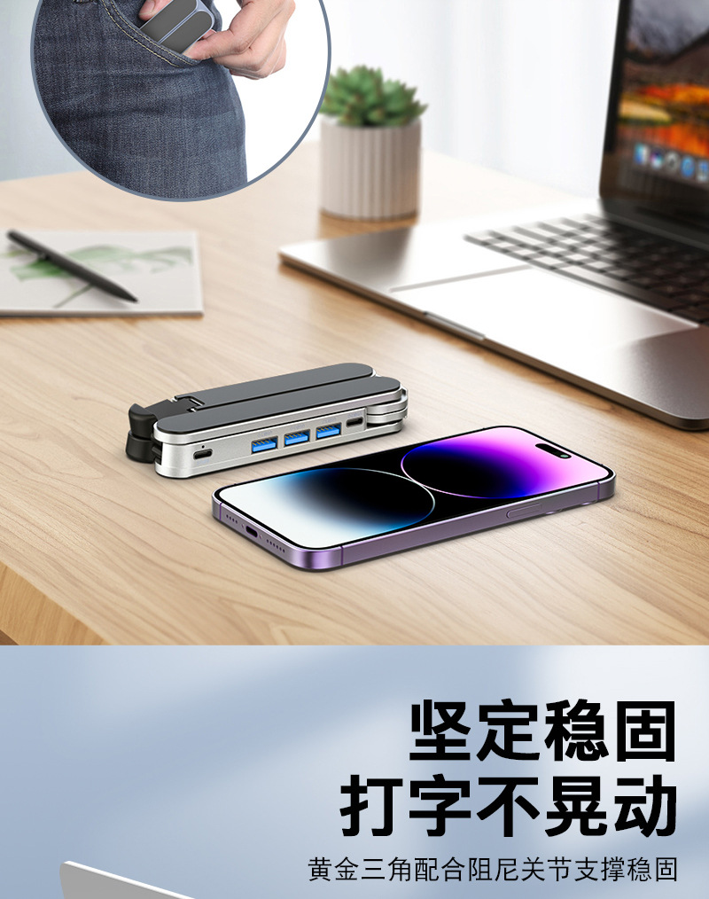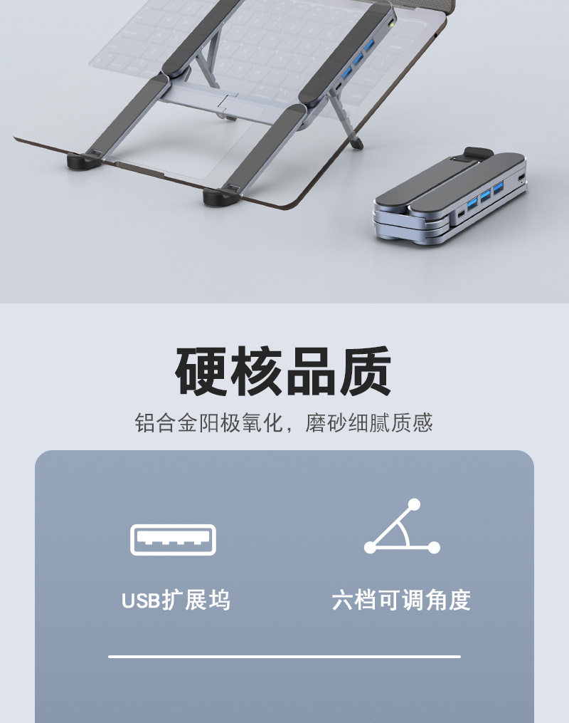 확장 도크 USB 허브가 포함된 새로운 X13TS 알루미늄 합금 높이 조절 스탠드 접이식 스탠드 노트북 스탠드