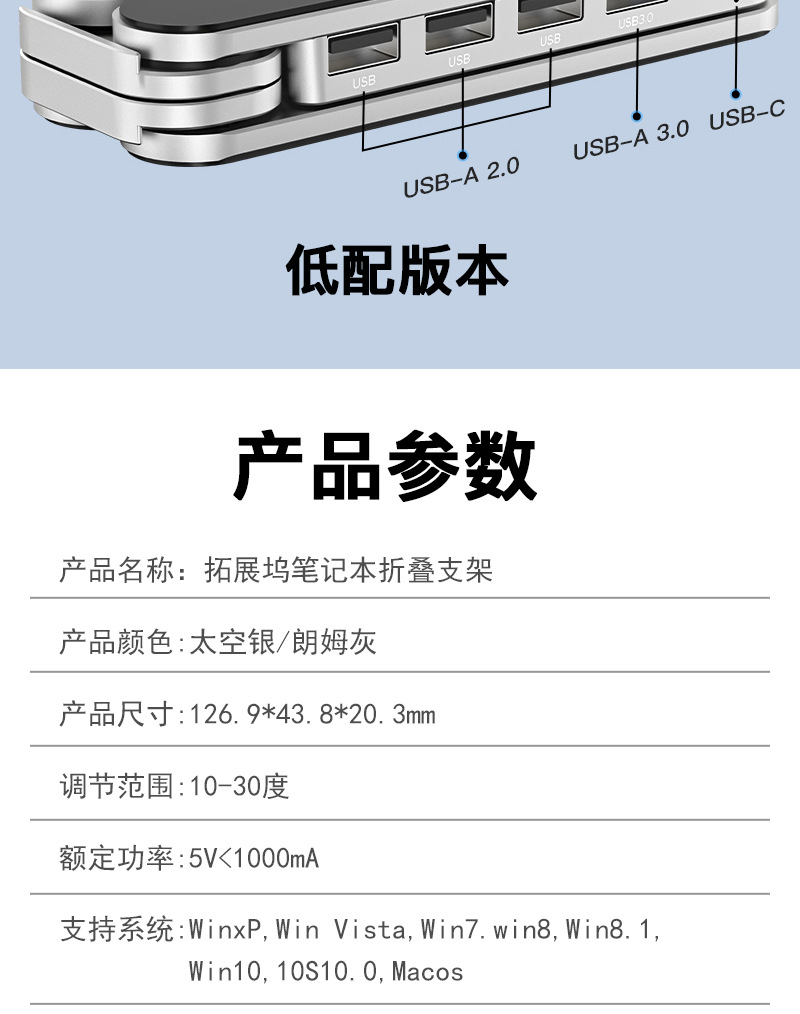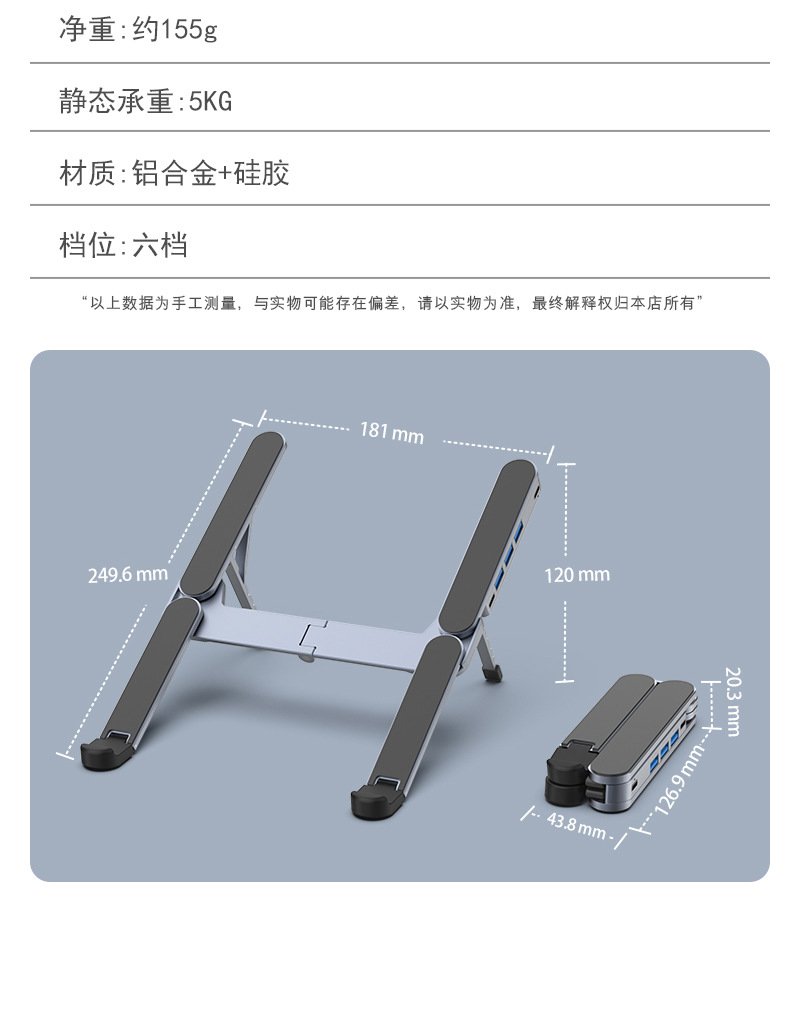 확장 도크 USB 허브가 포함된 새로운 X13TS 알루미늄 합금 높이 조절 스탠드 접이식 스탠드 노트북 스탠드스토어 가기