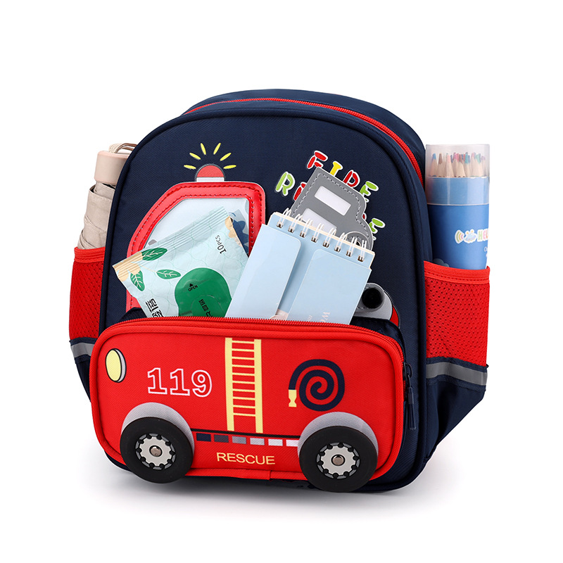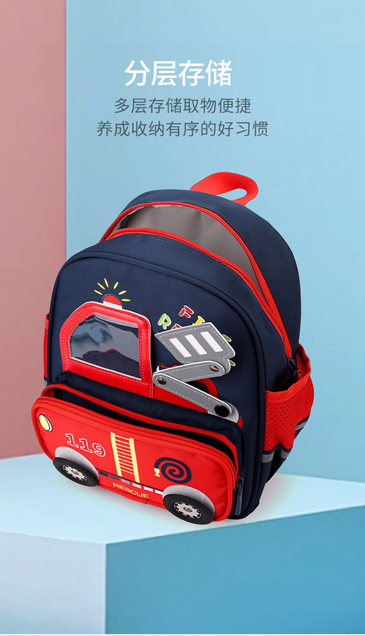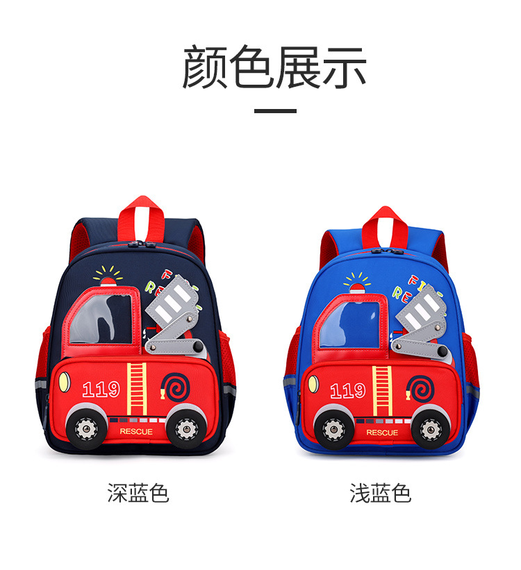 국경 간 새로운 어린이 학교 가방 아기 배낭 유치원 3-6 세 어깨 고급 소방차 만화 스타일