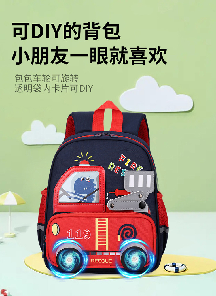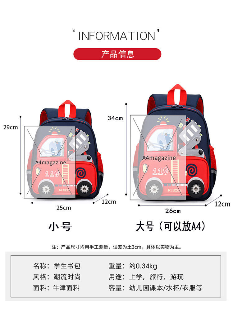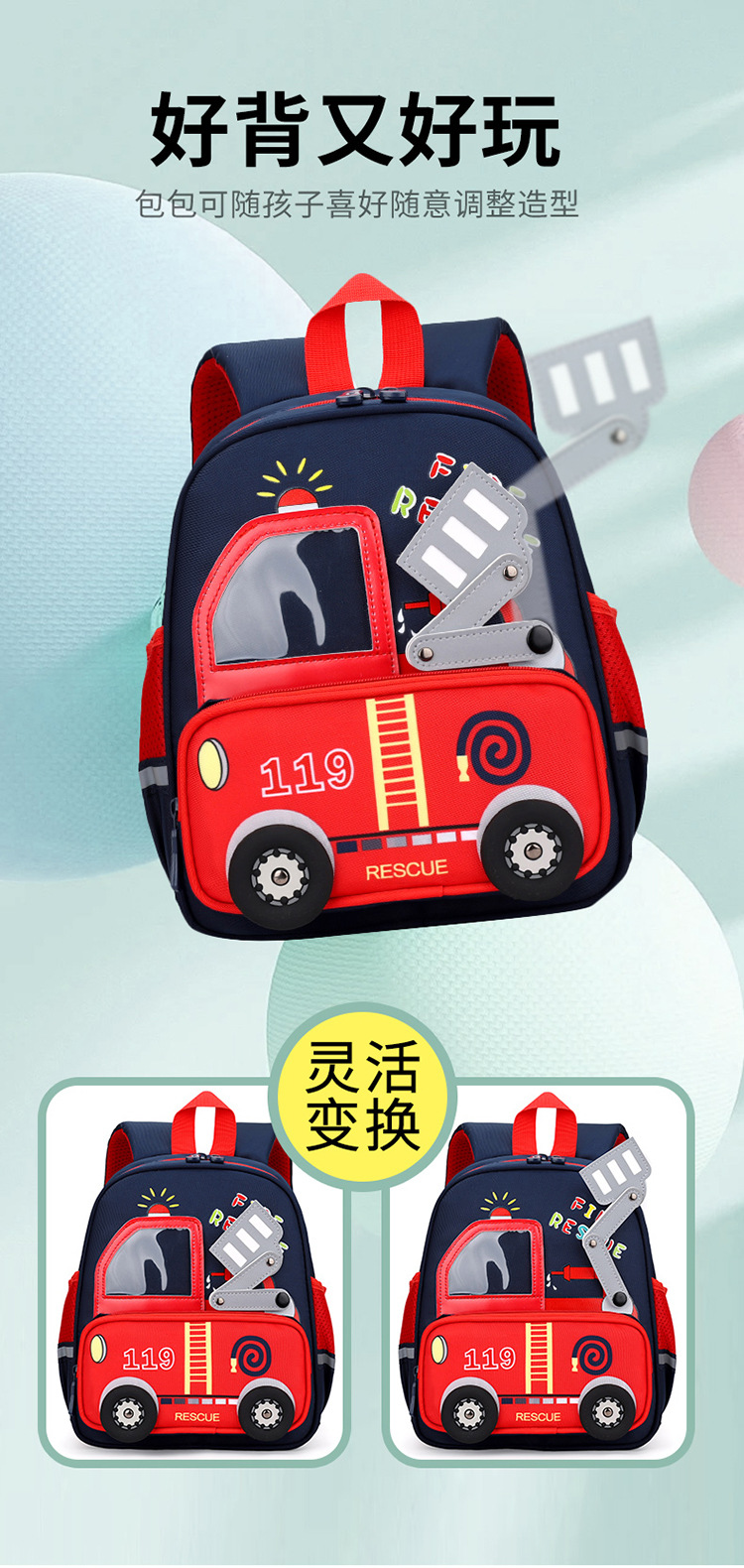 국경 간 새로운 어린이 학교 가방 아기 배낭 유치원 3-6 세 어깨 고급 소방차 만화 스타일스토어 가기