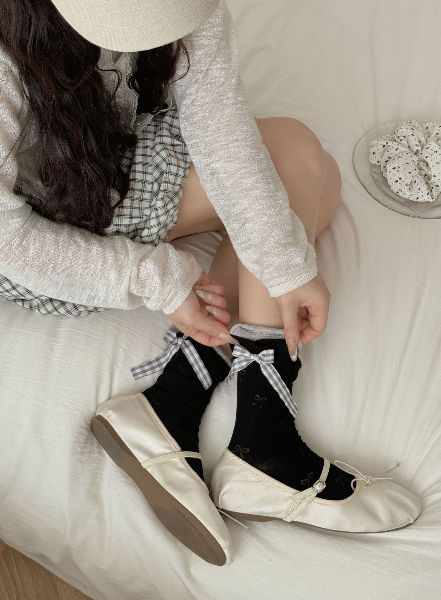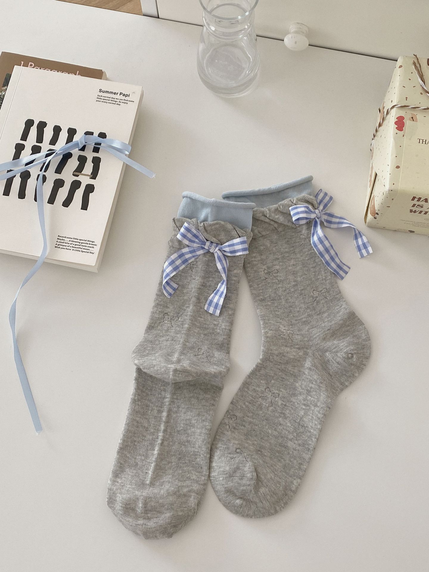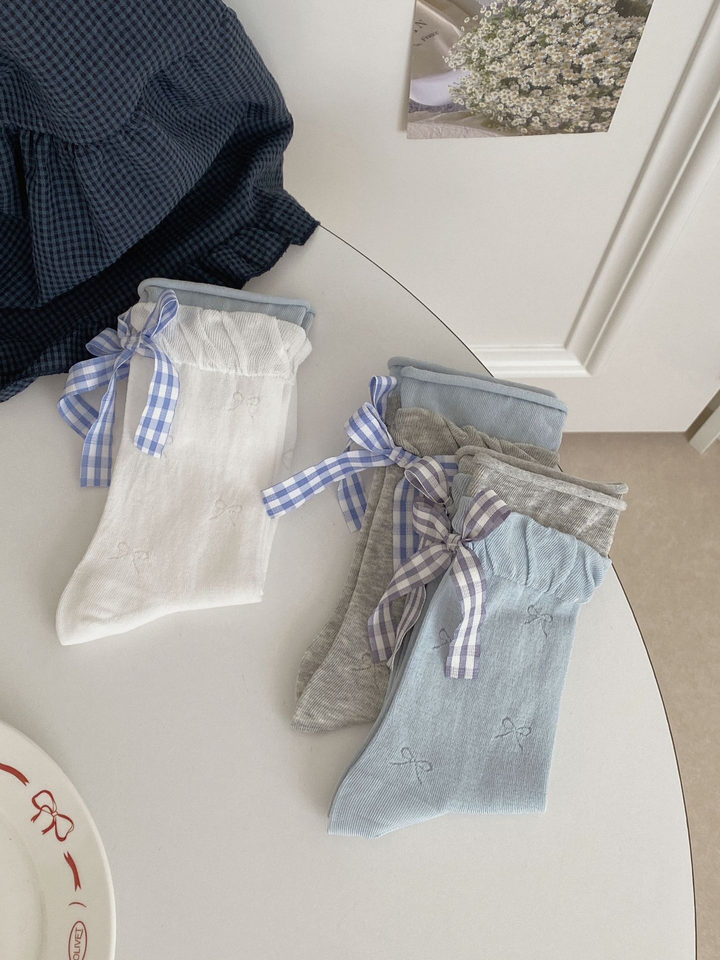 양말 여성용 종아리 중간 양말 봄 여름 리본 트렌디 양말 격자 무늬 양말 여성용 로리타 jk 작은 가죽 신발과 여성용 양말스토어 가기