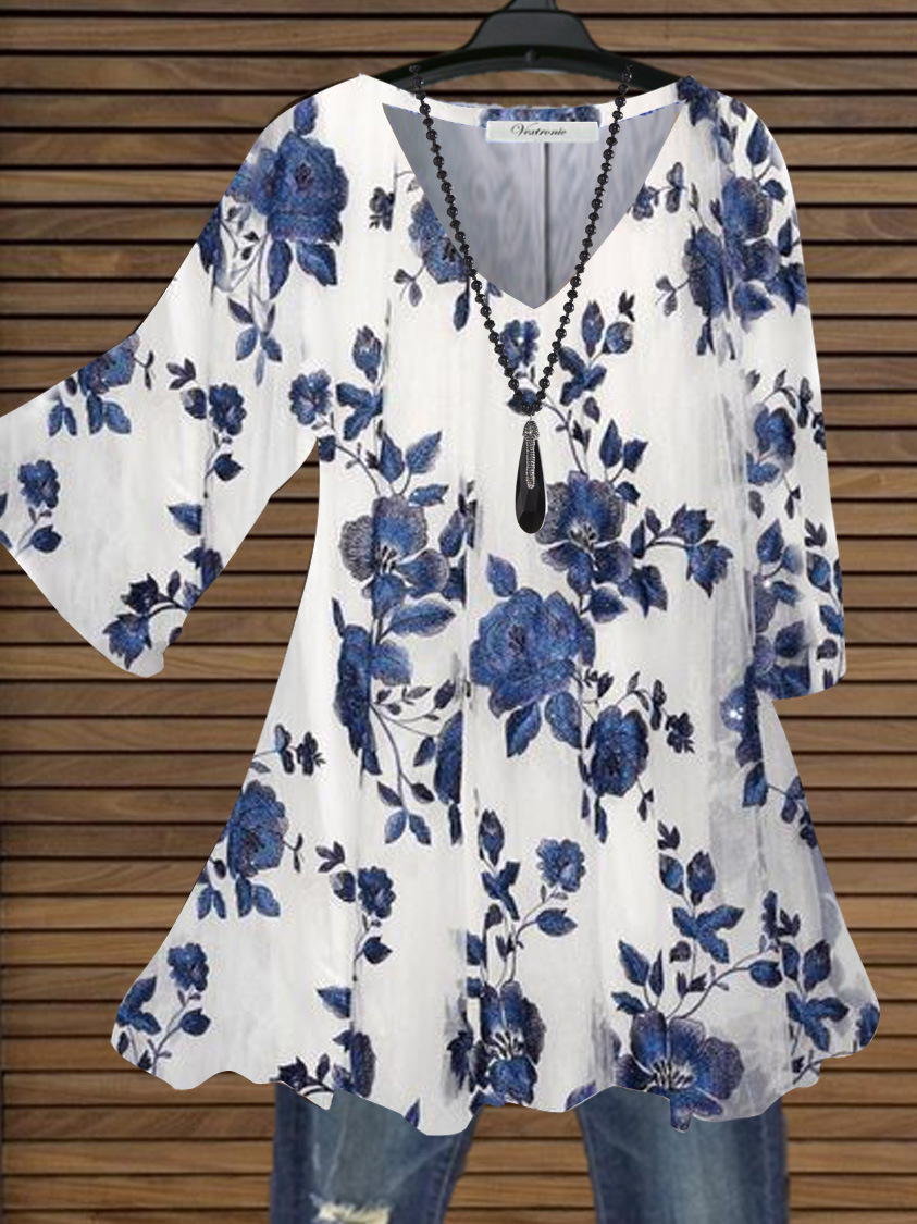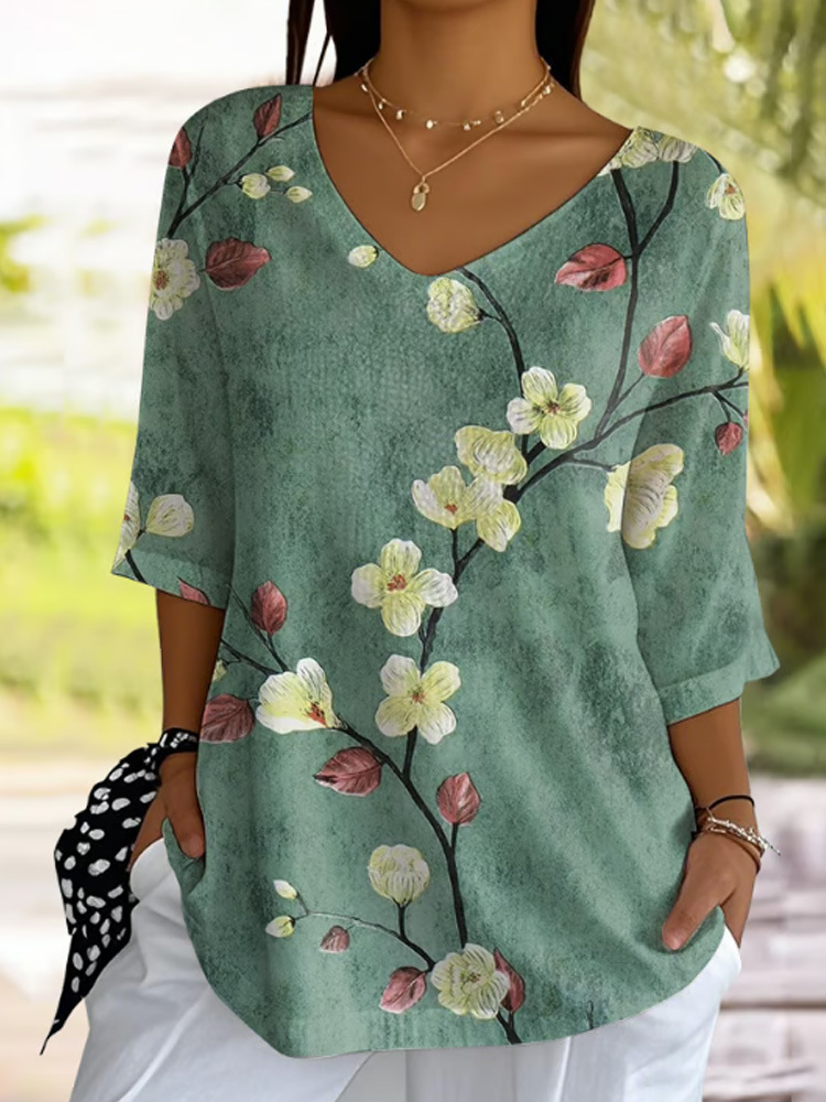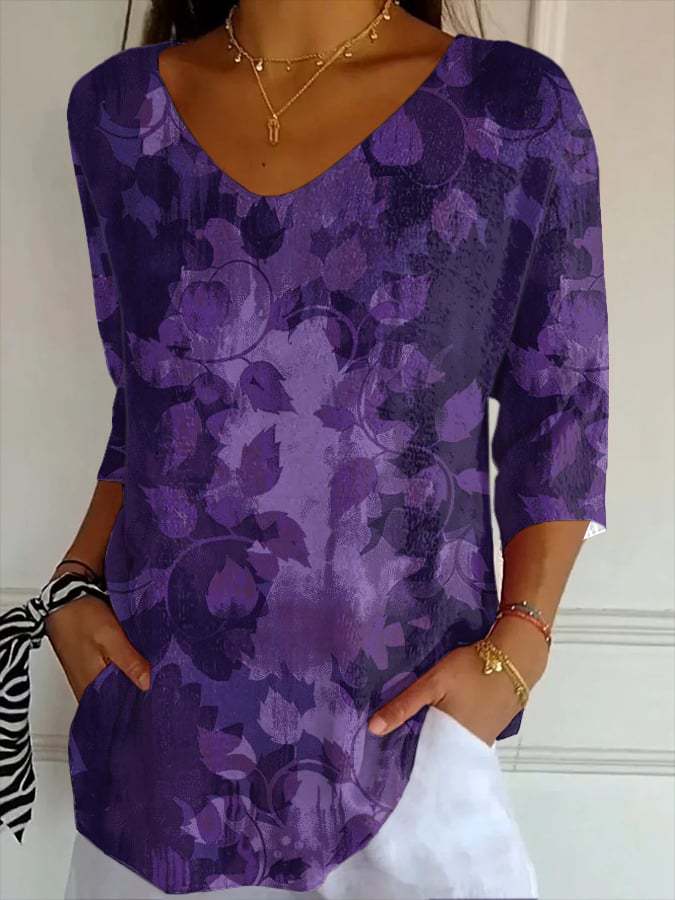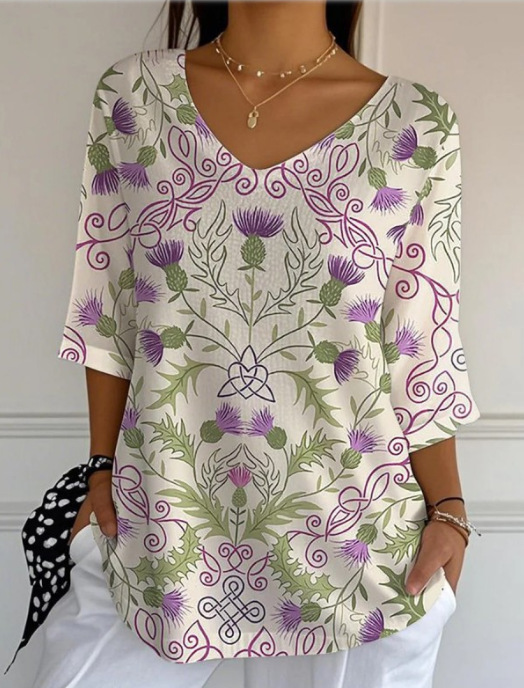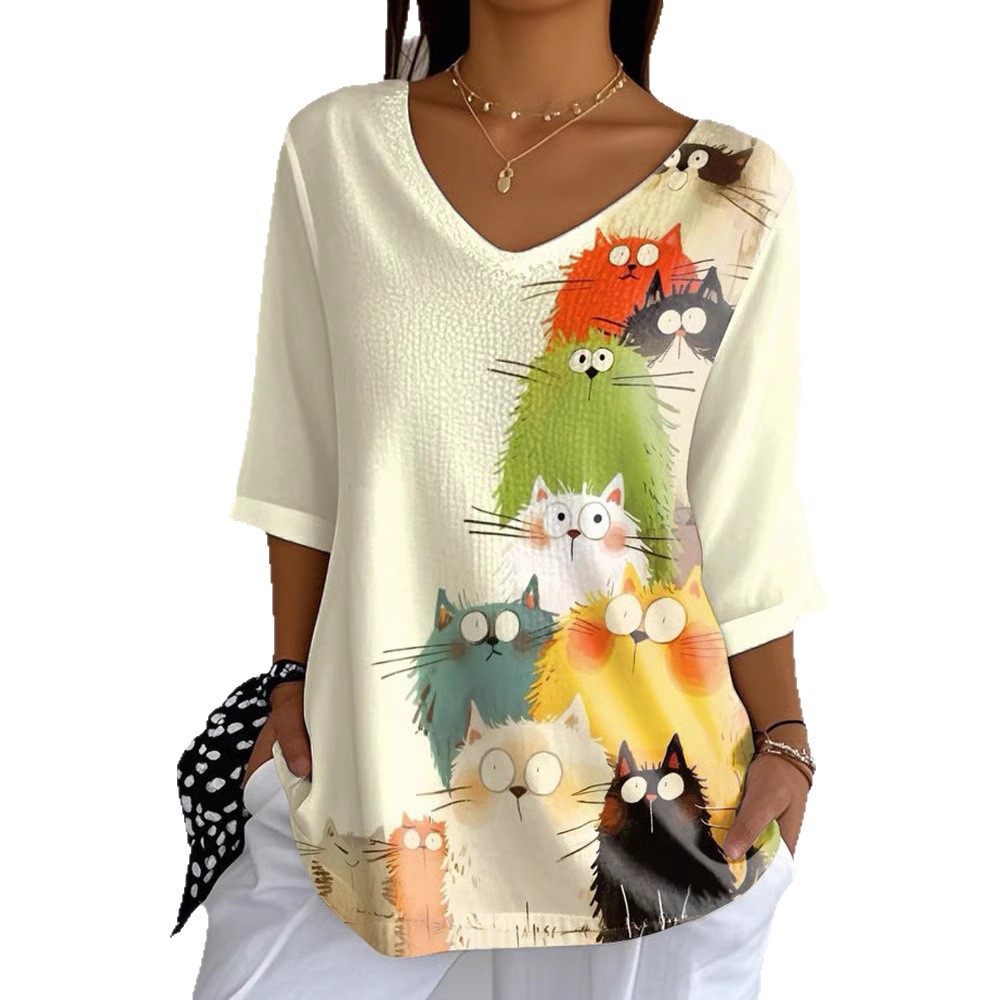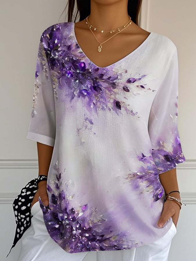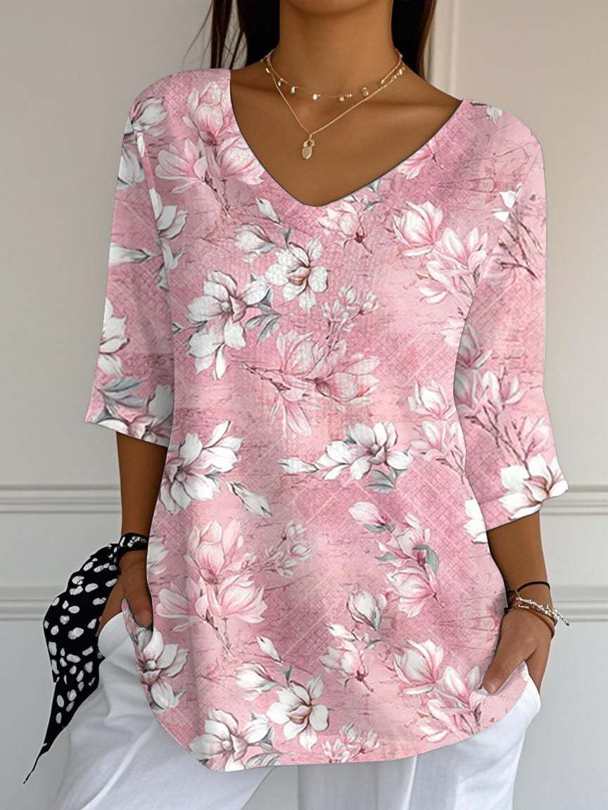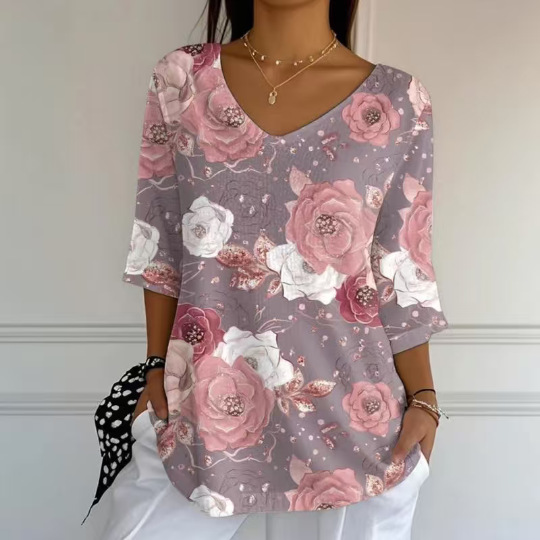 국경 간 Amazon 독립 스테이션 여름을위한 새로운 3D 인쇄 여성 유럽과 미국 패션 꽃 V 넥 셔츠 탑