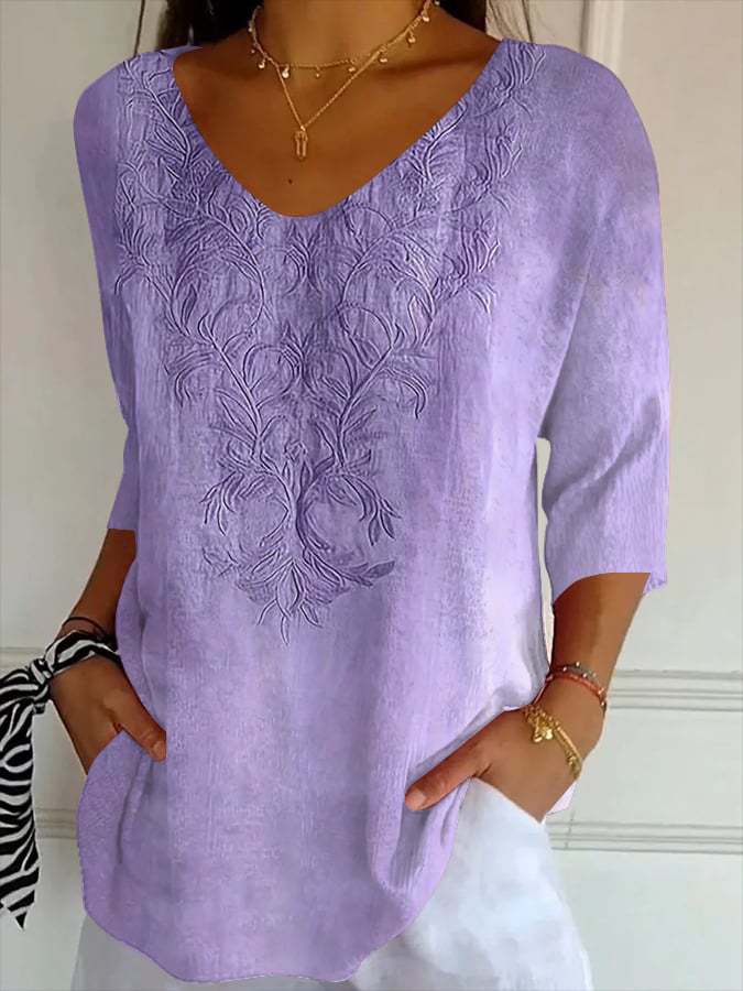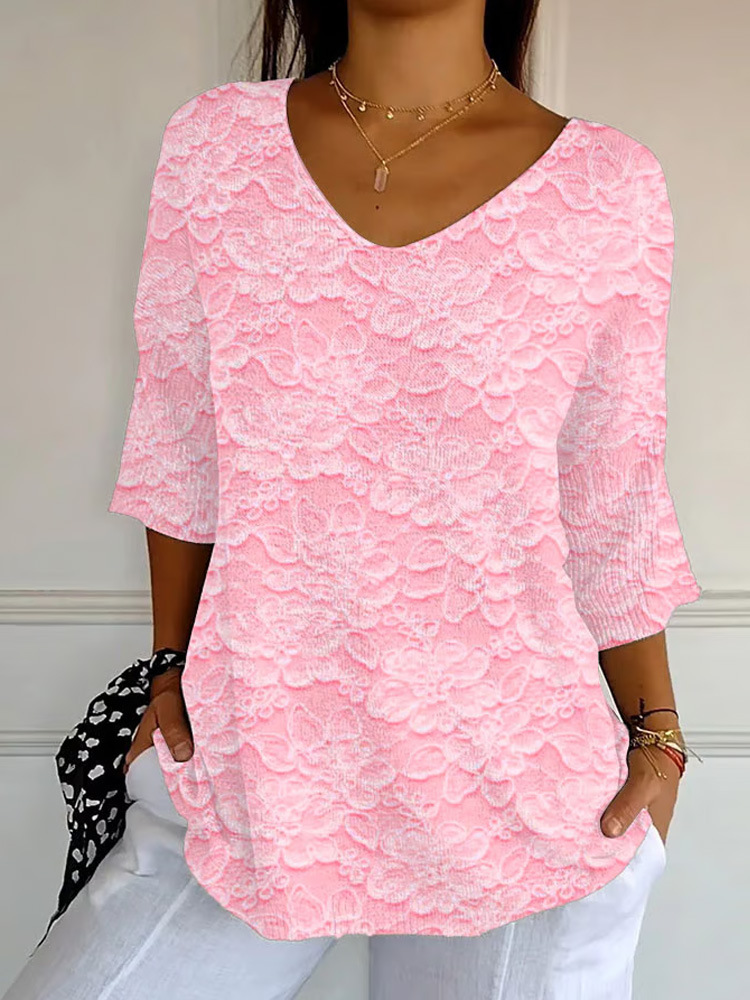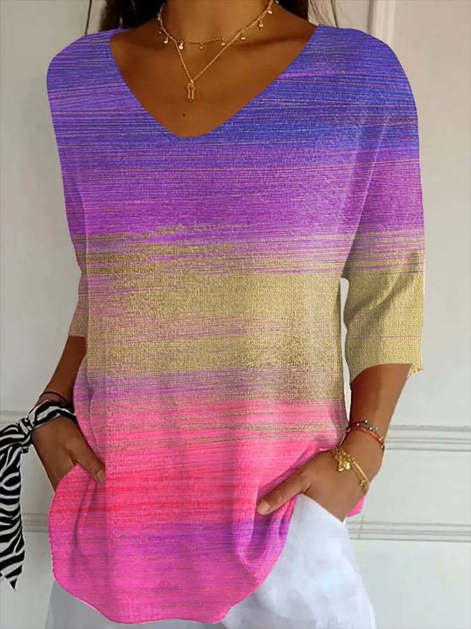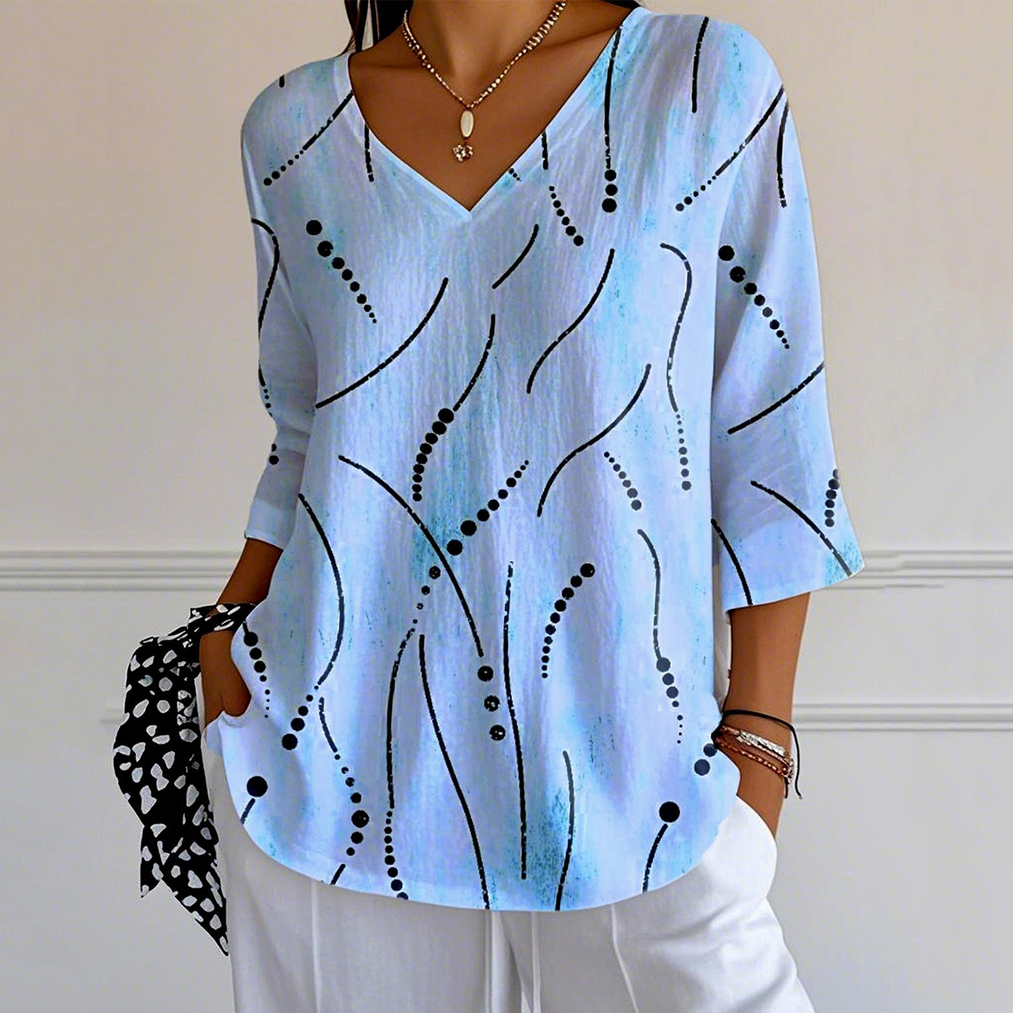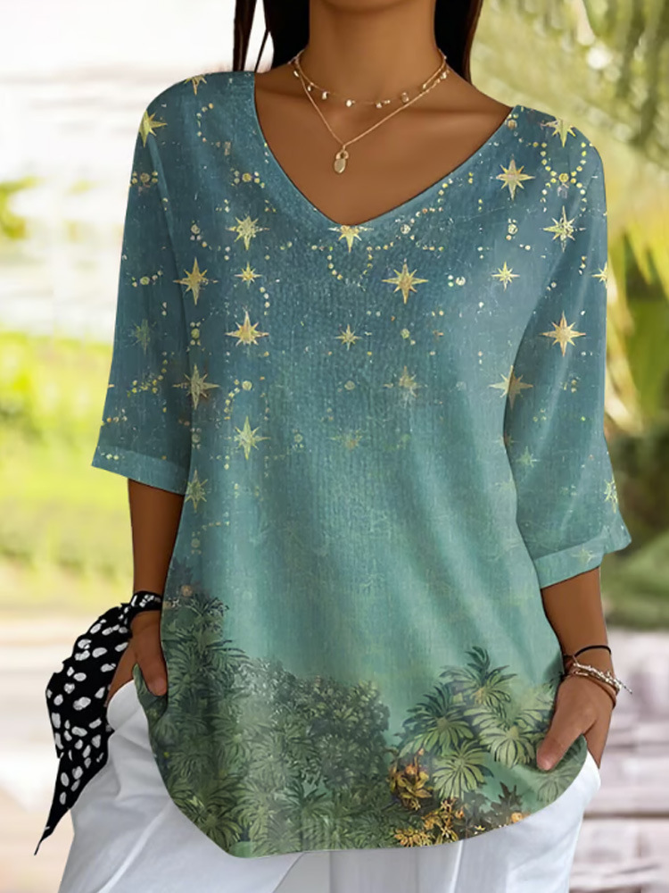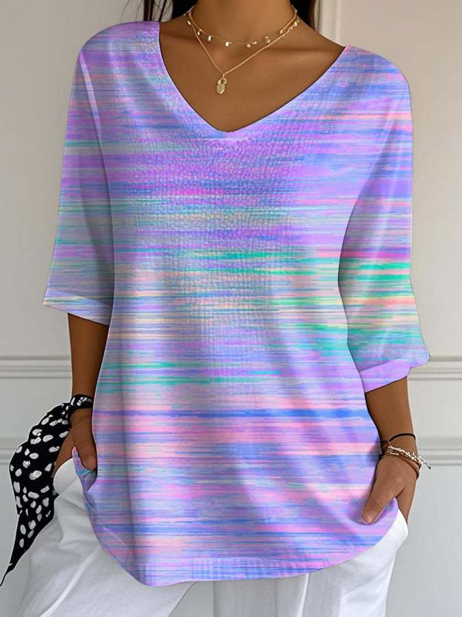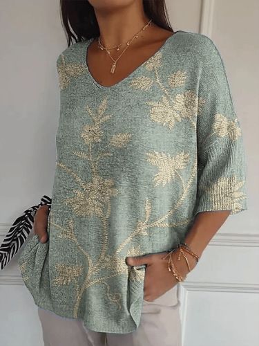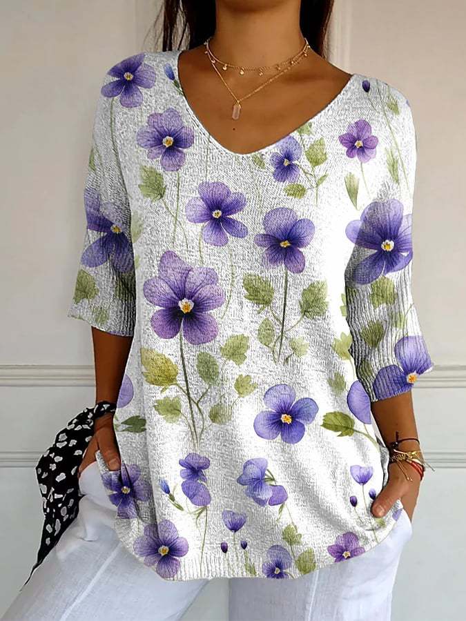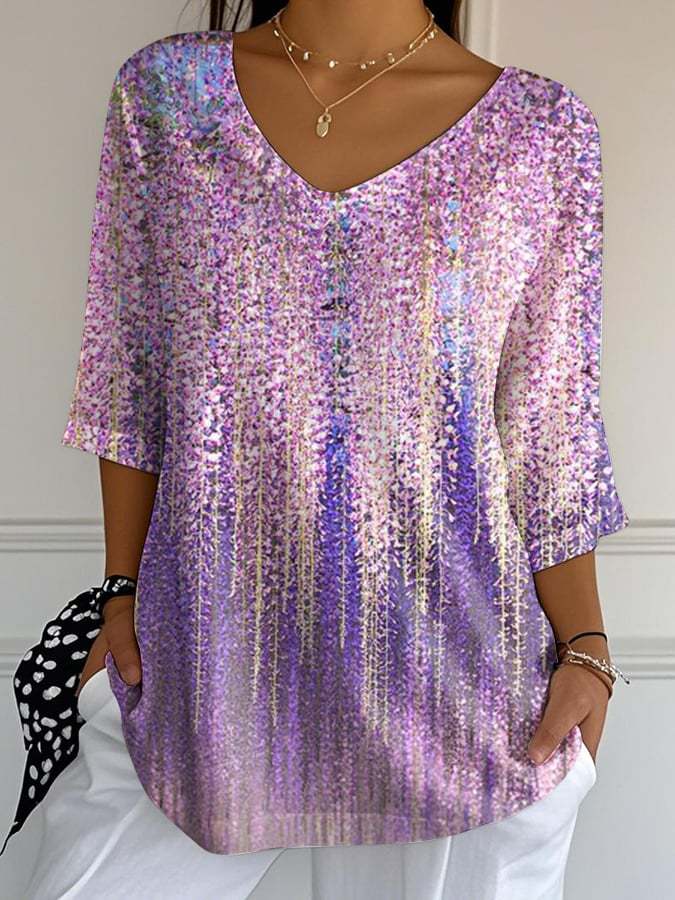 국경 간 Amazon 독립 스테이션 여름을위한 새로운 3D 인쇄 여성 유럽과 미국 패션 꽃 V 넥 셔츠 탑