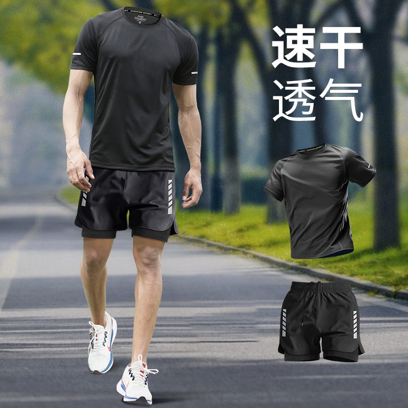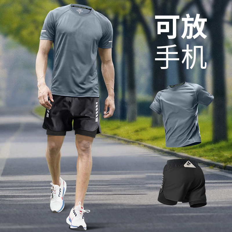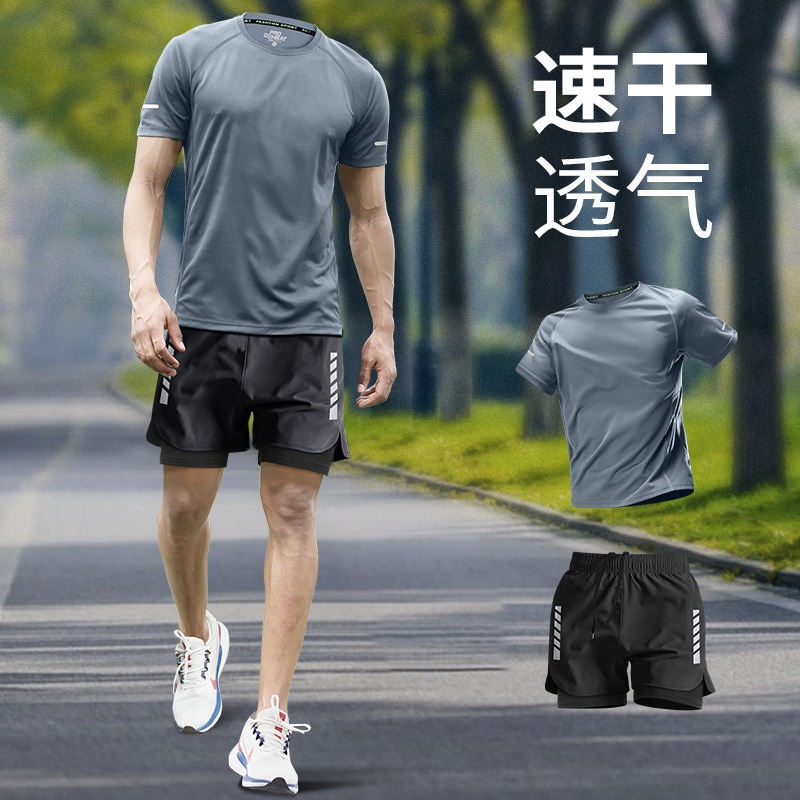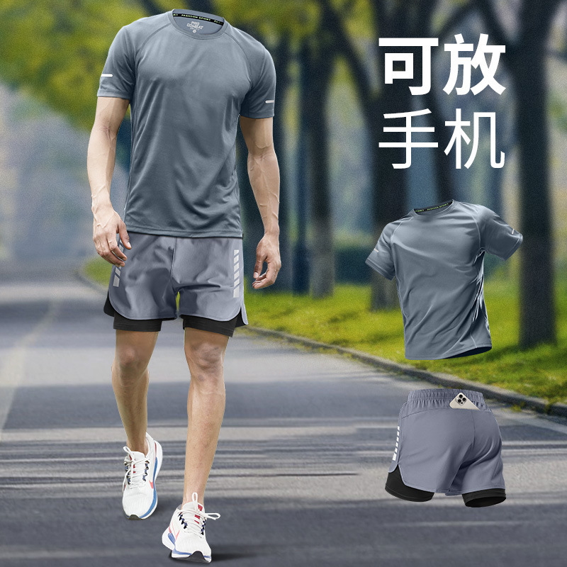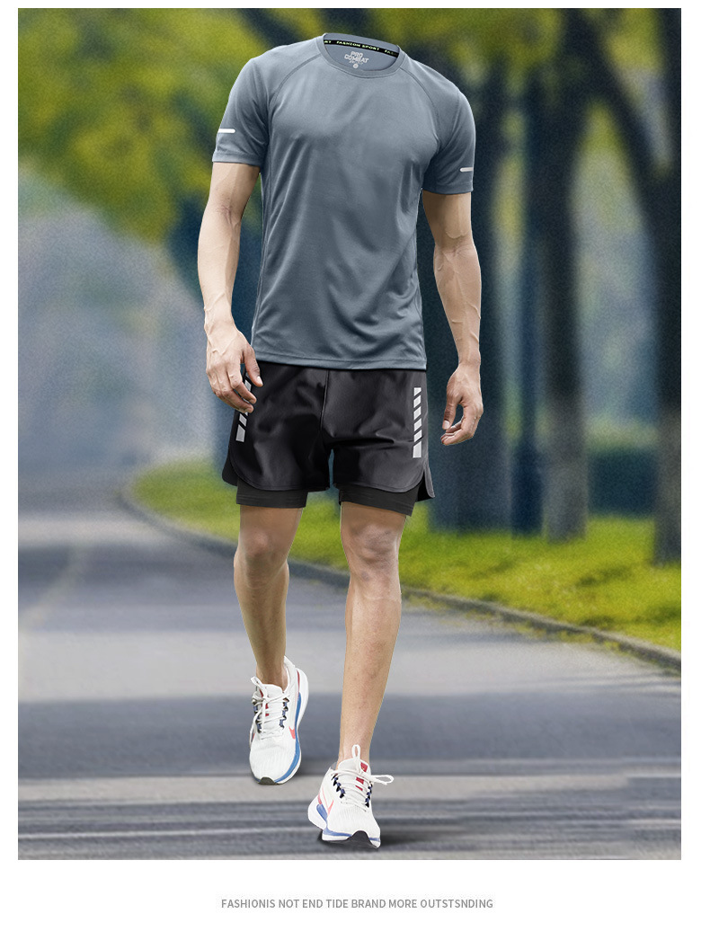 스포츠 정장 남자 얼음 실크 티셔츠 여름 얇은 속건성 반팔 훈련 러닝 장비 피트니스 의류 새로운 스타일