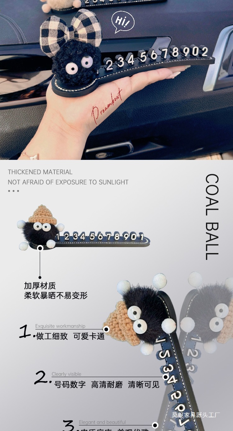 임시 주차 번호판, 귀여운 작은 연탄, 자동차 센터 콘솔 액세서리, 창의적인 자동차 이동 전화 번호판 2025 새로운 스타일스토어 가기