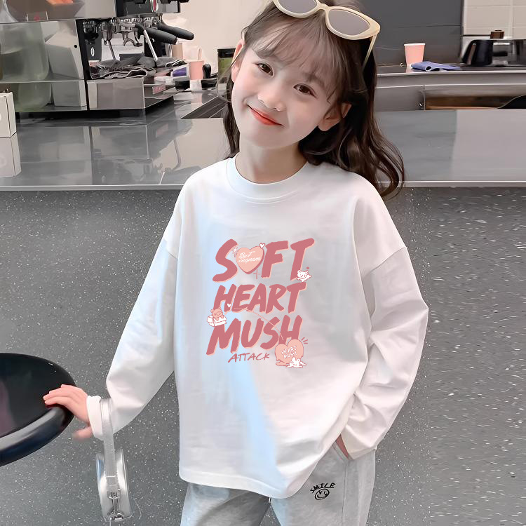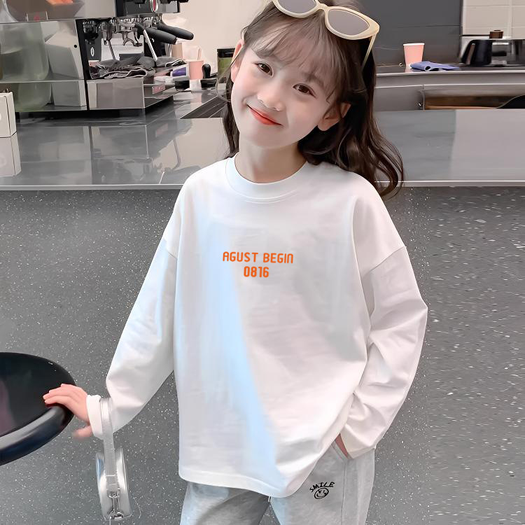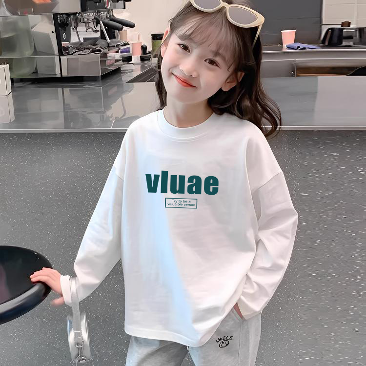 여아 의류 흰색 면 바닥 셔츠 봄, 가을 루즈하고 세련된 긴팔 중대형 아동 티셔츠와 다용도 탑스토어 가기