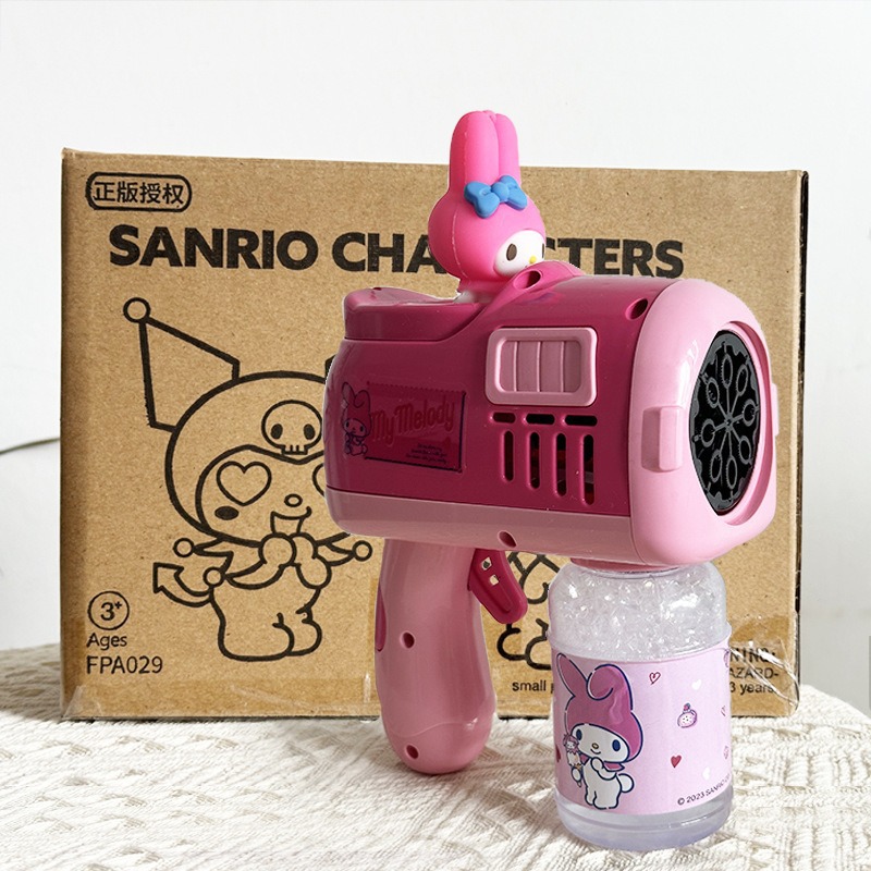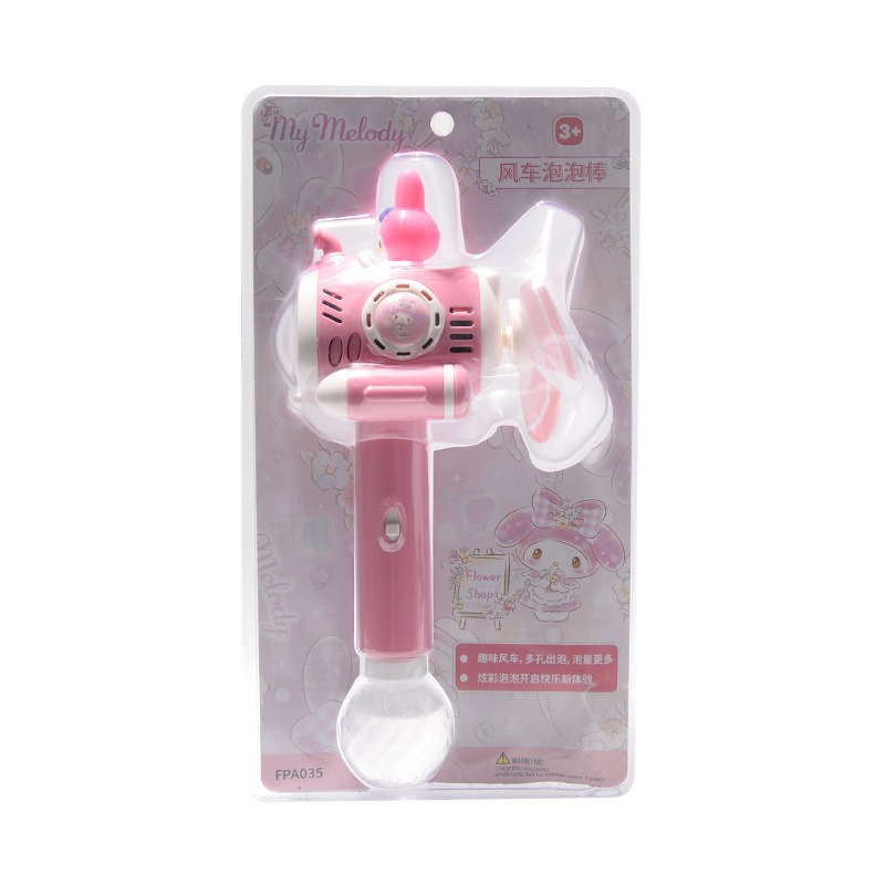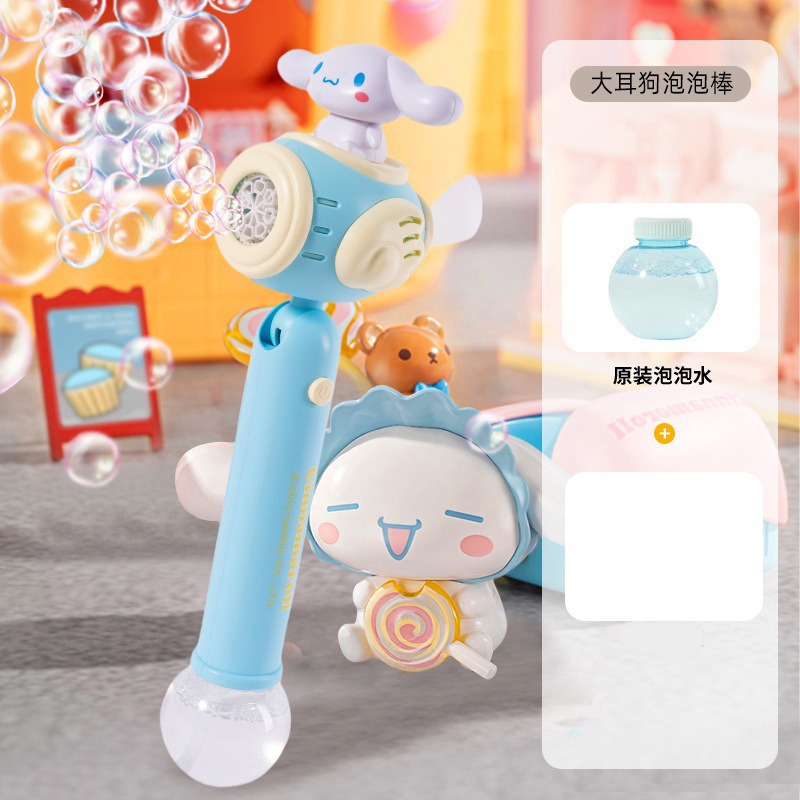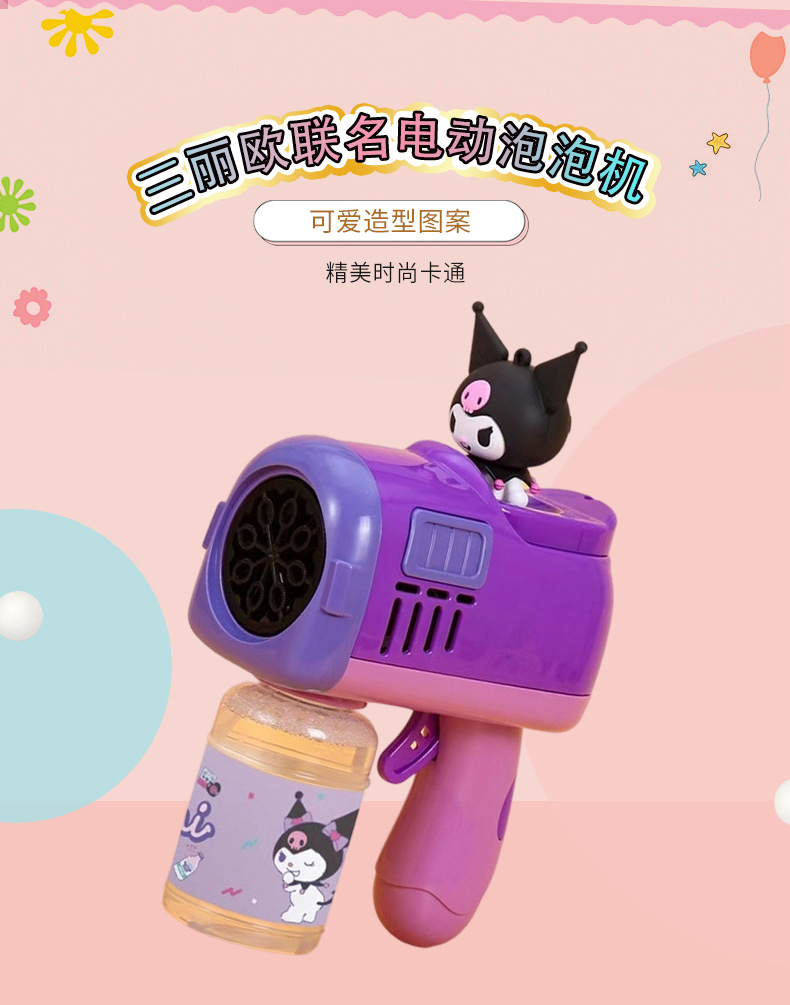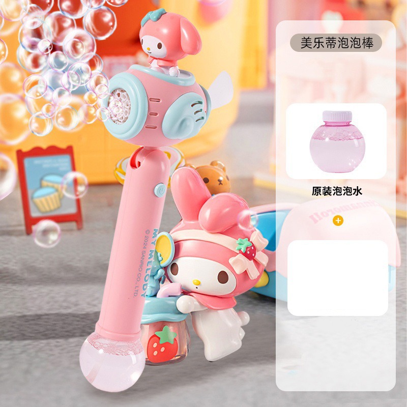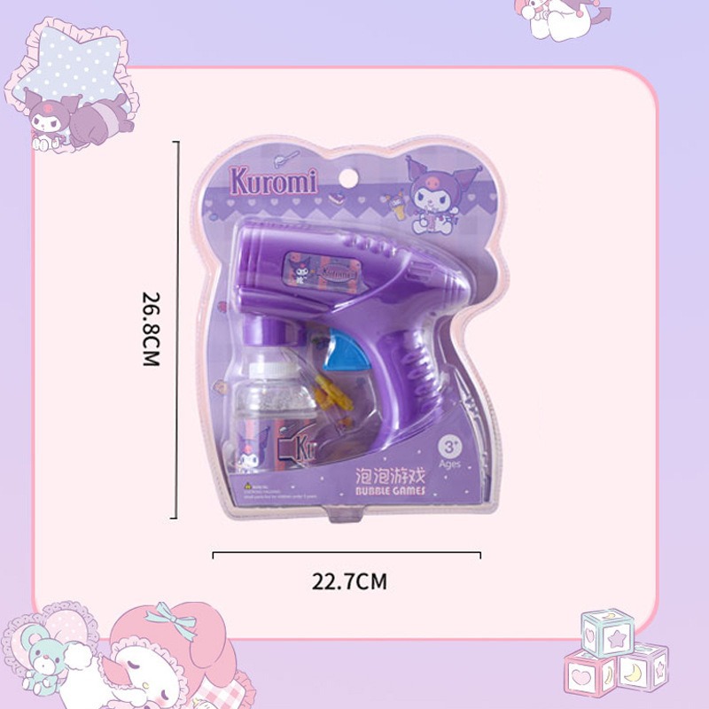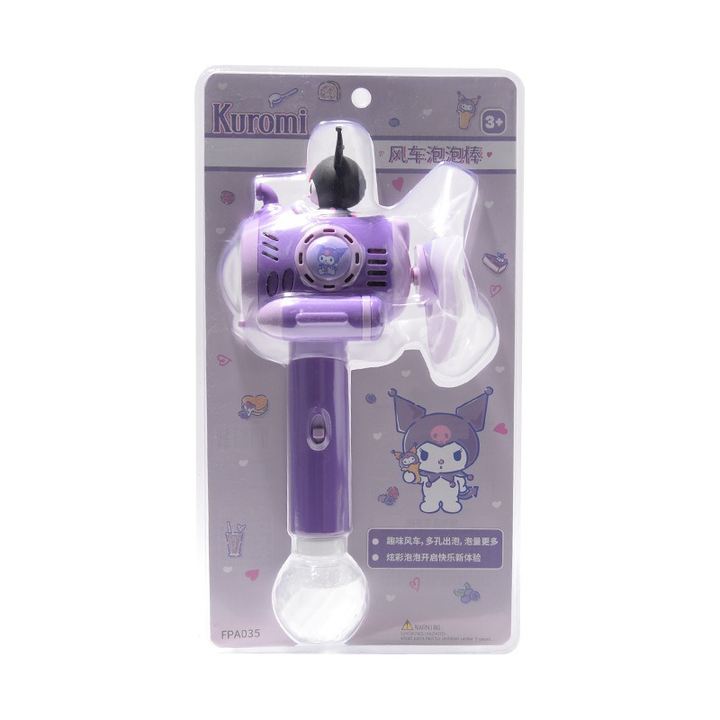 Sanrio 어린이 완전 자동 쿠로미 휴대용 전기 풍차 버블 완드 마술 지팡이 버블 부는 기계 장난감