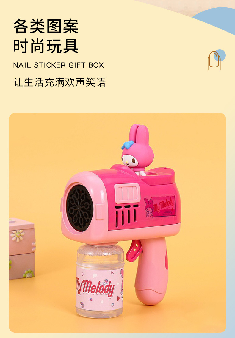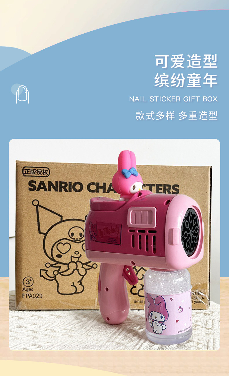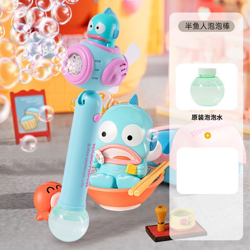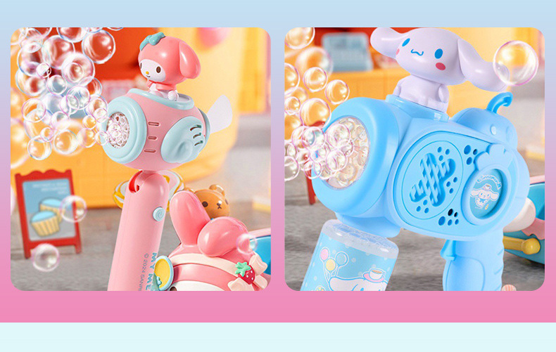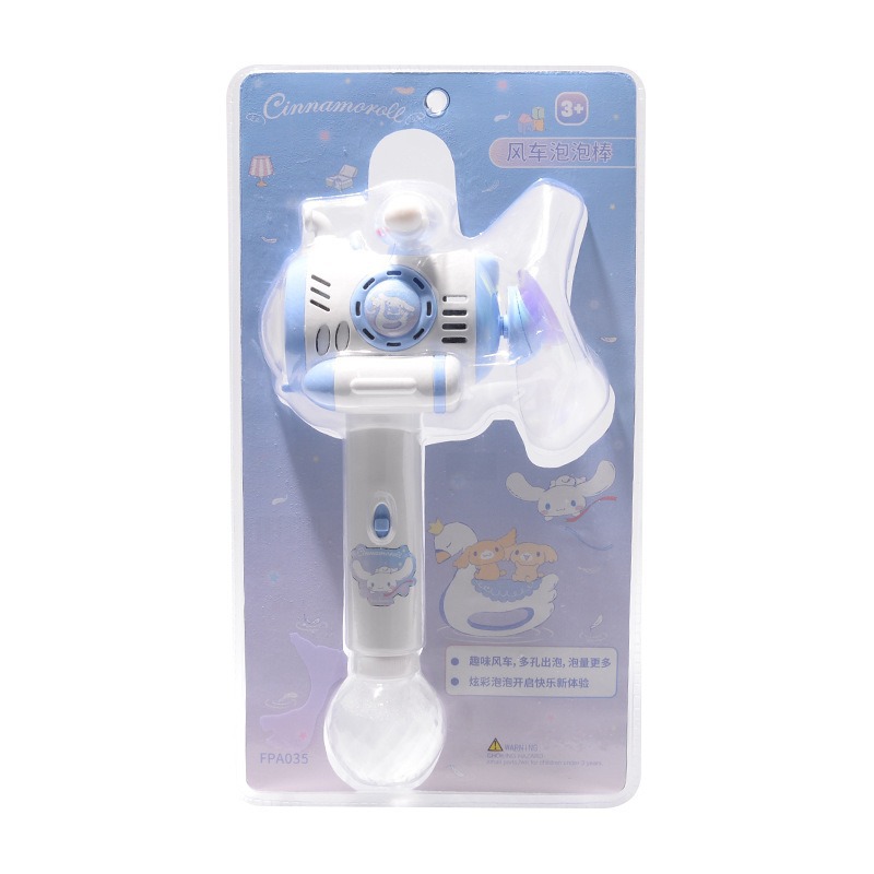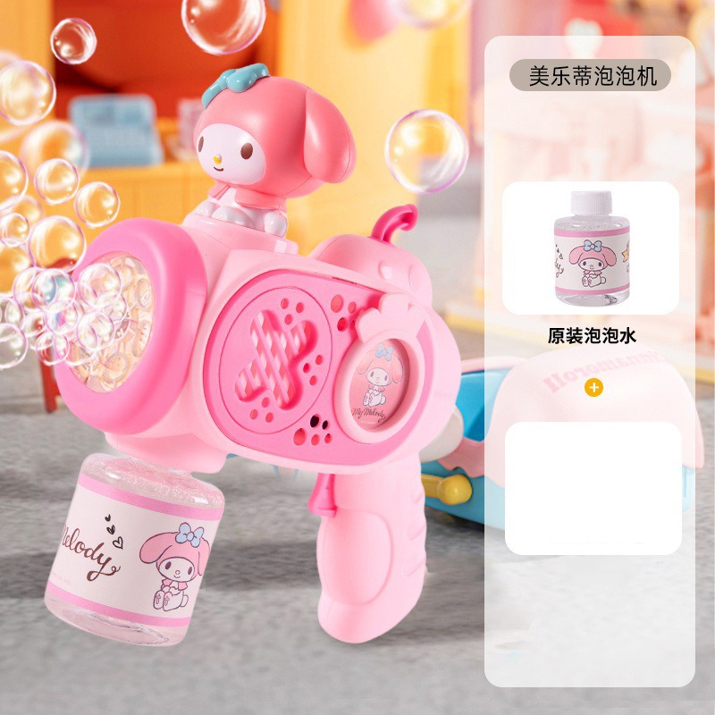 Sanrio 어린이 완전 자동 쿠로미 휴대용 전기 풍차 버블 완드 마술 지팡이 버블 부는 기계 장난감