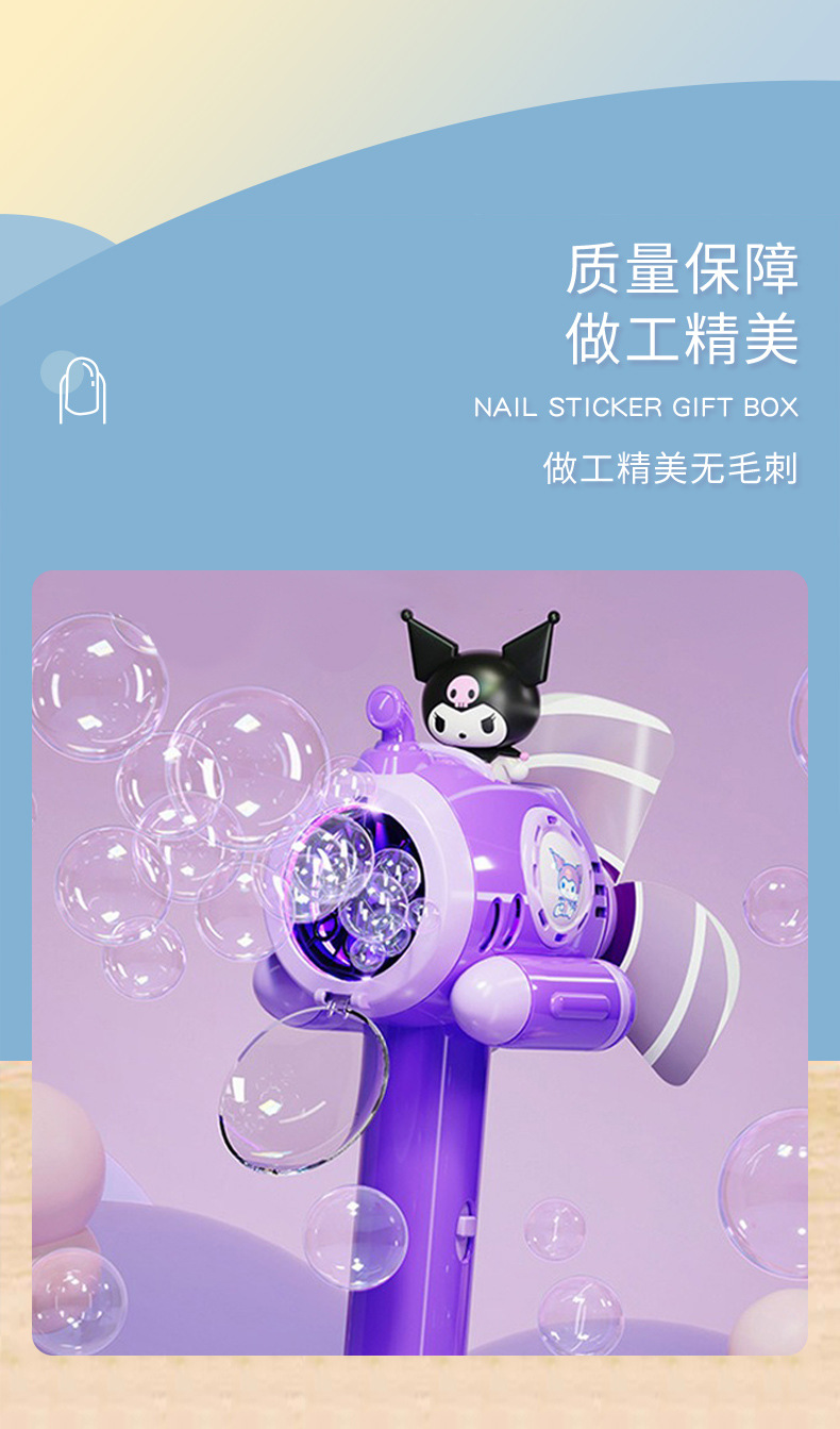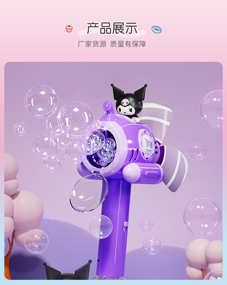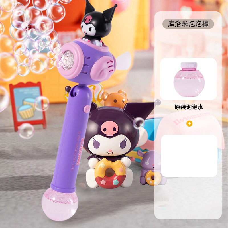 Sanrio 어린이 완전 자동 쿠로미 휴대용 전기 풍차 버블 완드 마술 지팡이 버블 부는 기계 장난감스토어 가기