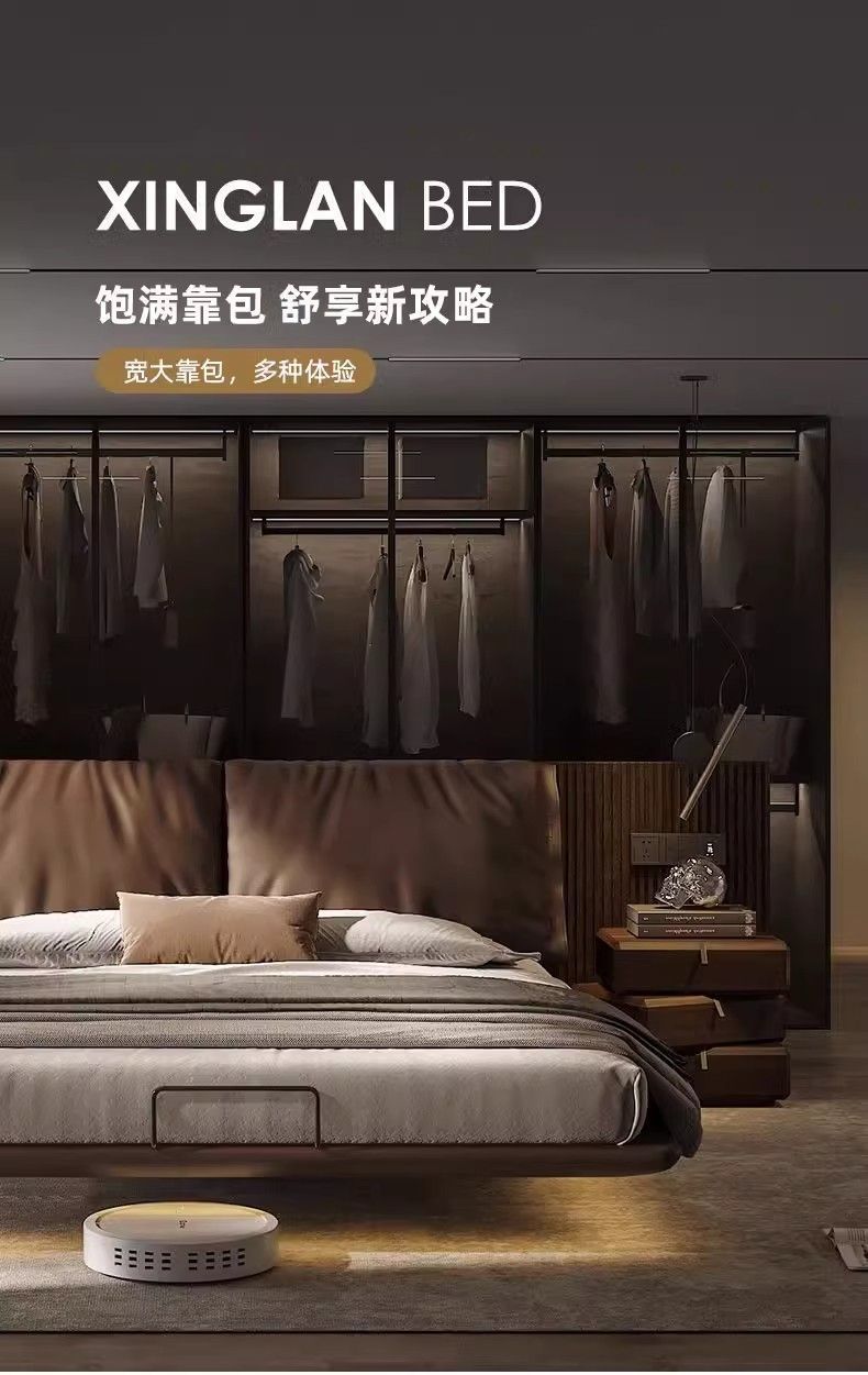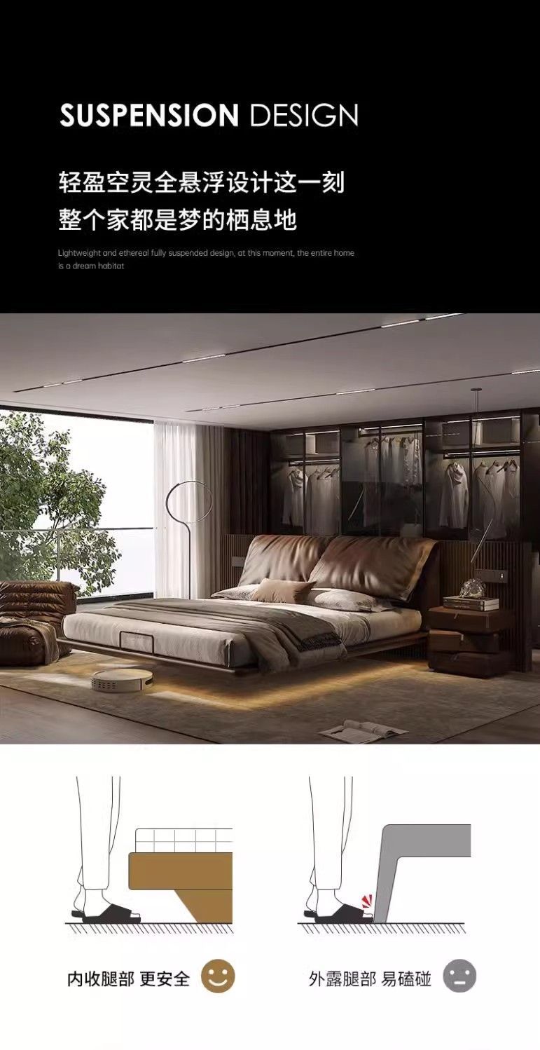 귀 서스펜션 침대 라이트 럭셔리 모던 미니멀리스트 마스터 침실 심플 이탈리안 미니멀리스트 침대 인터넷 연예인 소프트 백 침대스토어 가기