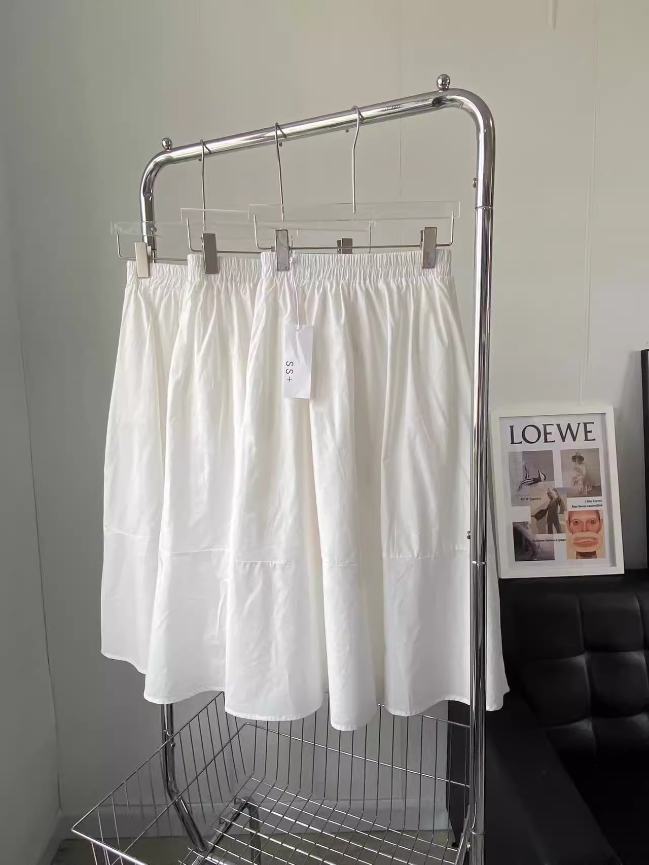 한국 신상 캐주얼 만능 하이웨이스트 힙커버 슬리밍 중간기장 A라인 대형 스커트 여성 트렌디 화이트 스커트스토어 가기