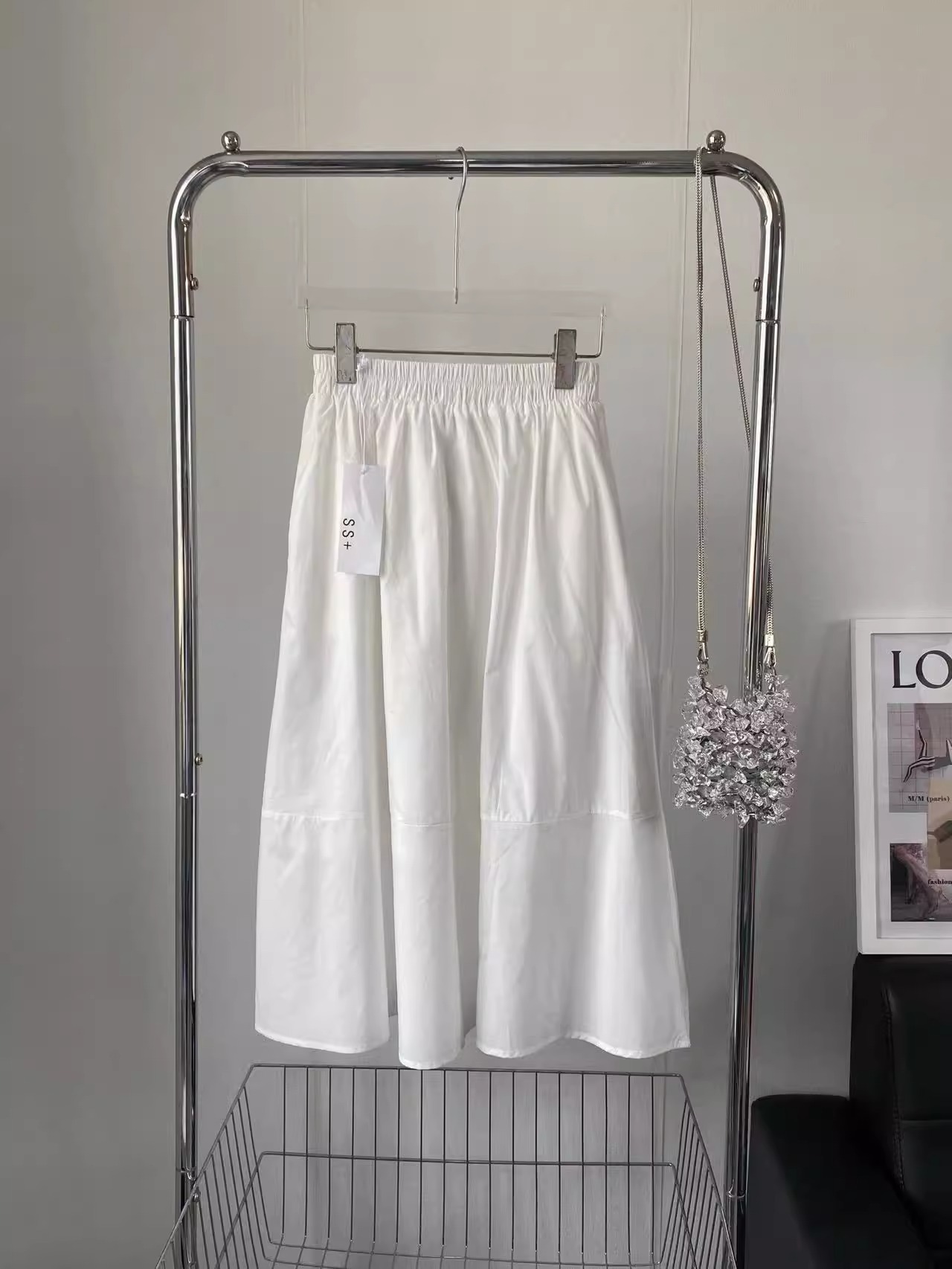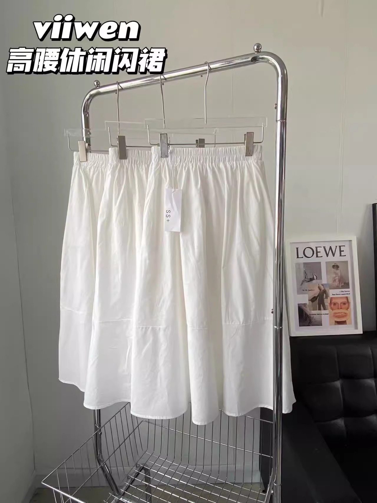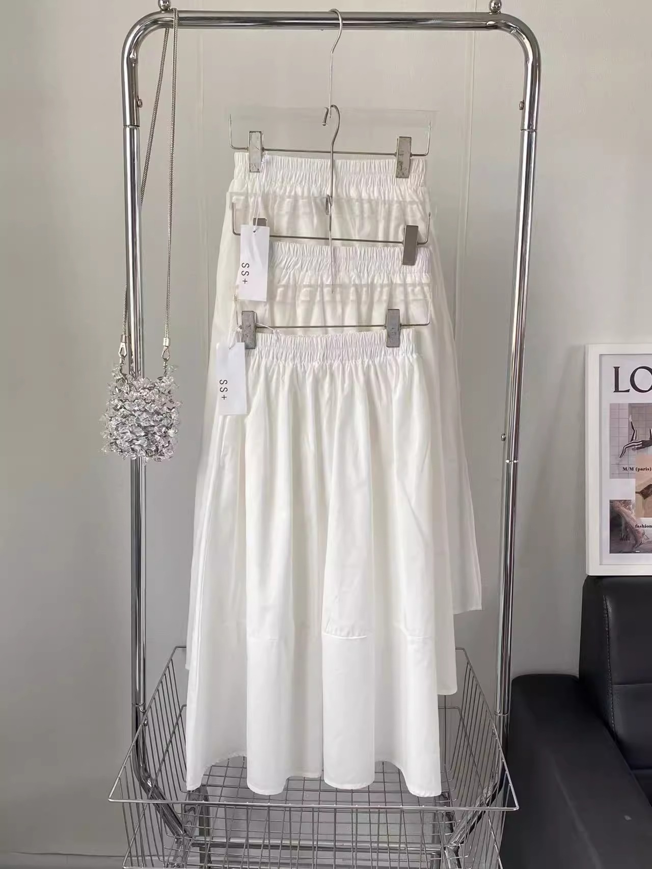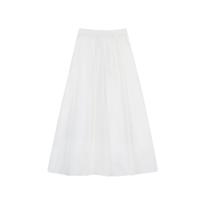 한국 신상 캐주얼 만능 하이웨이스트 힙커버 슬리밍 중간기장 A라인 대형 스커트 여성 트렌디 화이트 스커트
